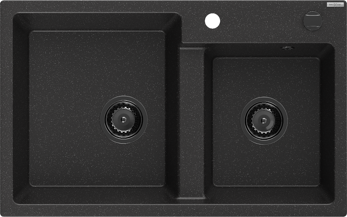 Mexen Tomas granitizlietne divu nodalījumu izlietne 800 x 500 mm, melna/sudraba metālisks, melns sifons - 6516802000-73-B