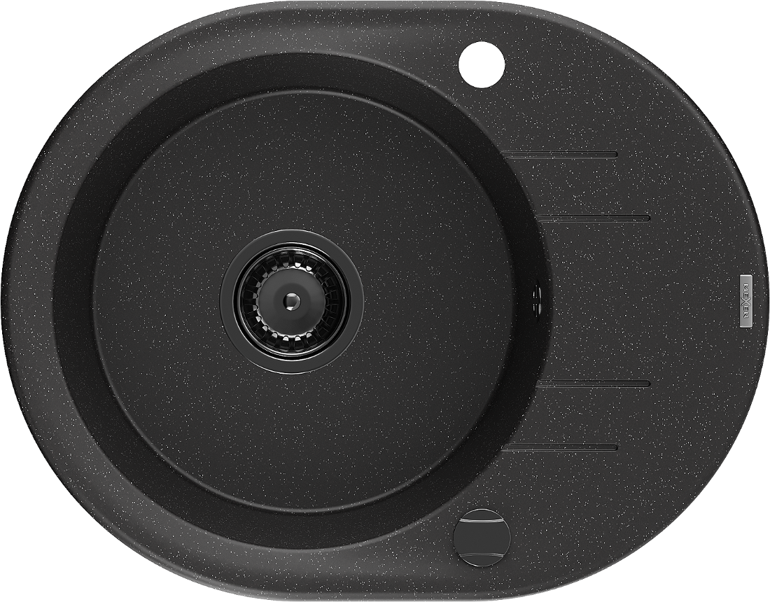 Mexen Kevin vienas granīta izlietnes ar notecēju 586 x 458 mm, melns/sudraba metāliks, melns sifons - 6517581005-73-B