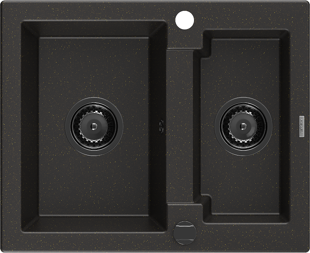 Mexen Carlos 1,5 nodalījumu granīta izlietne 582 x 475 mm, melna/zeltīta metāliska, melns sifons - 6518581500-75-B