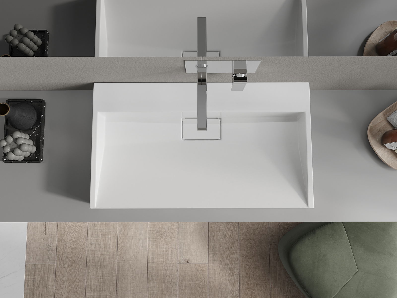 Uz galda uzstādāma izlietne no konglomerāta ar izmēriem 80 x 46 cm, baltā krāsā, ir ideāls risinājums mūsdienu vannas istabām. Pateicoties tās taisnstūrveida formai un specializētajai konstrukcijai, produkts lieliski iekļaujas dizaina tendencēs, vienlaikus piedāvājot funkcionalitāti. Zems augstums 11 cm padara izlietni ērtu lietošanā. Konglomerāta materiāls nodrošina izturību un vieglu uzturēšanu. Baterijas caurumu trūkums ļauj lielāku brīvību armatūras izvēlē.