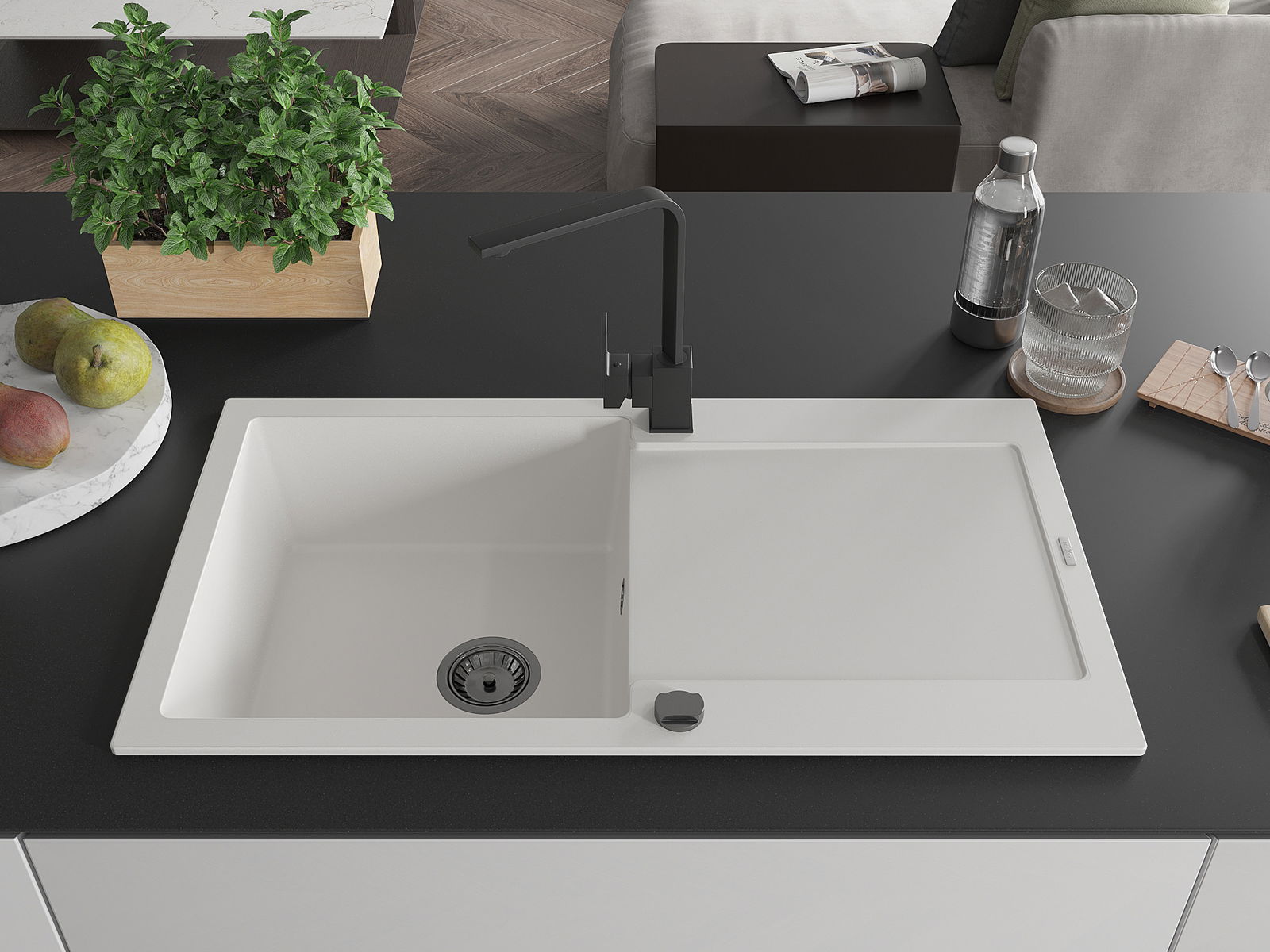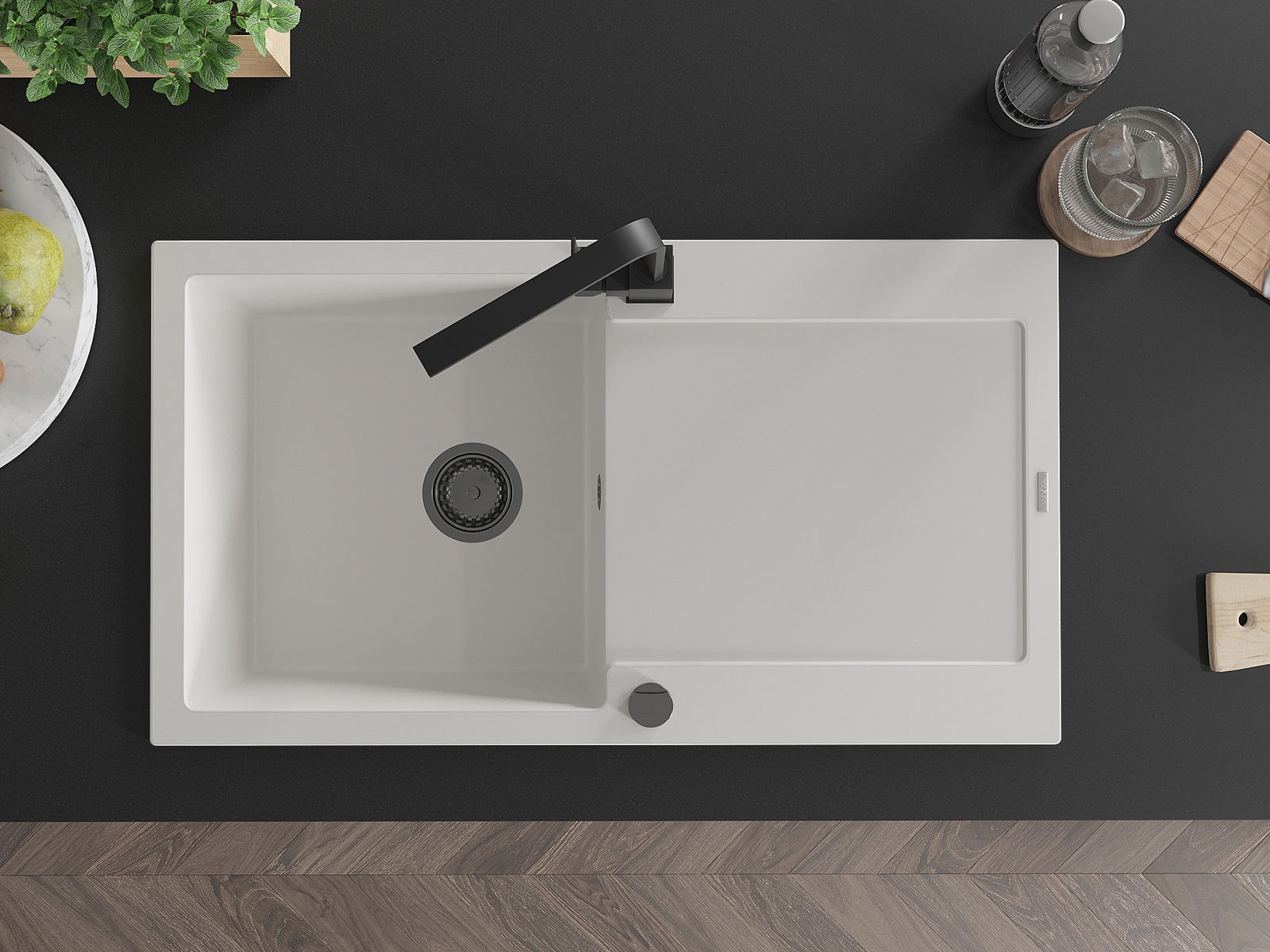 Mexen Leo granitizlietne ar 1 nodalījumu, notekas un virtuves celtni Rita, balta - 6501-20-670300-70