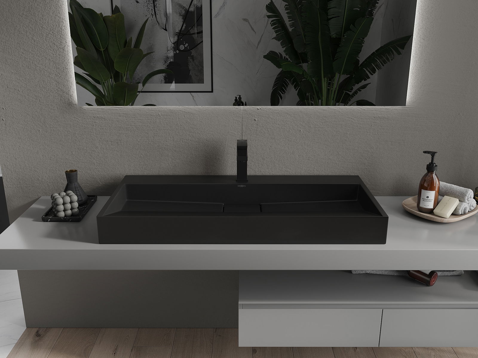 Mexen Ava galda virsmas izlietne no konglomerāta 1/O 100 x 46 cm, melna - 23011071