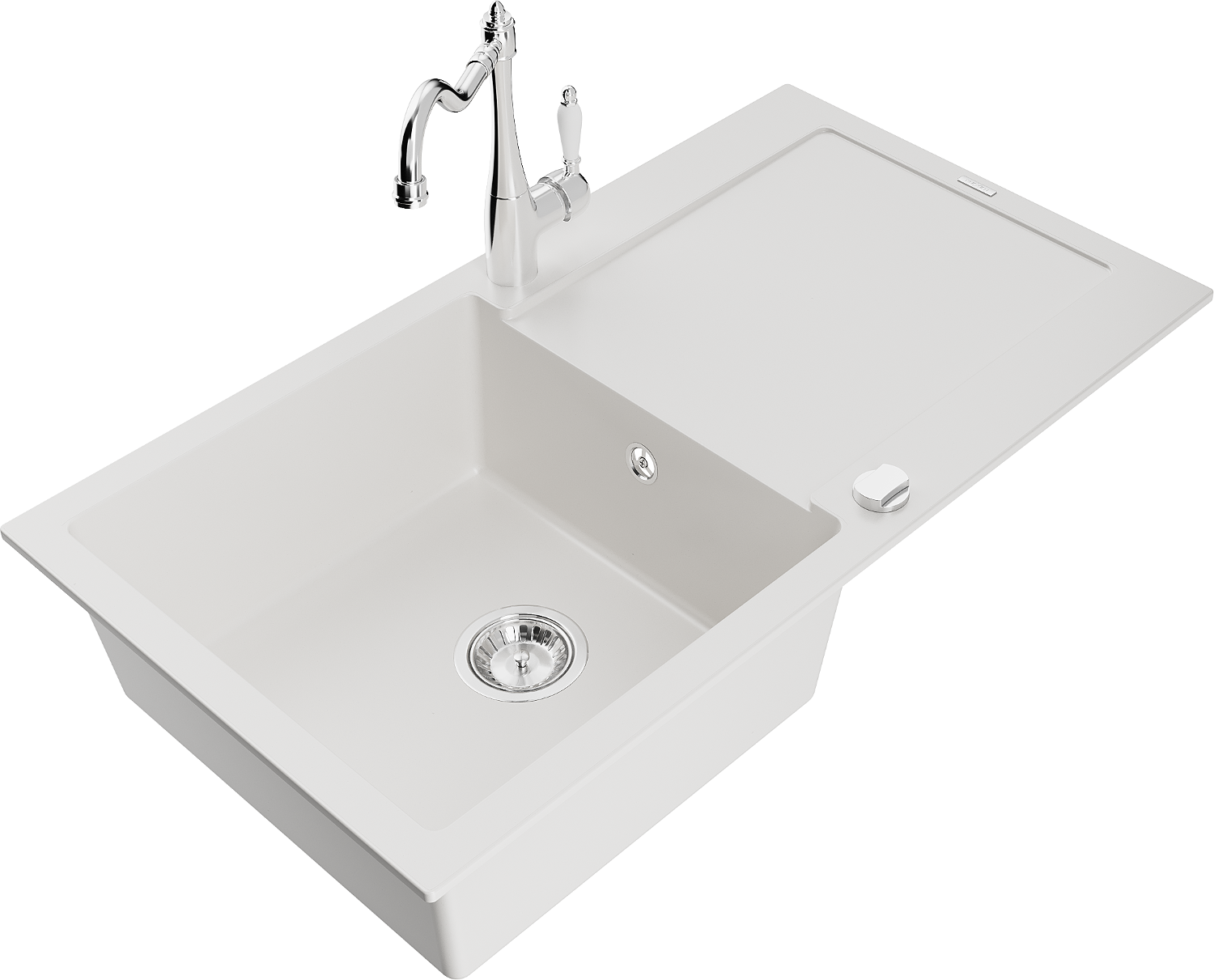 Mexen Leo granitizlietne 1 nodalījuma ar noteku un virtuves krānu Carla, balta - 6501-20-670700-00