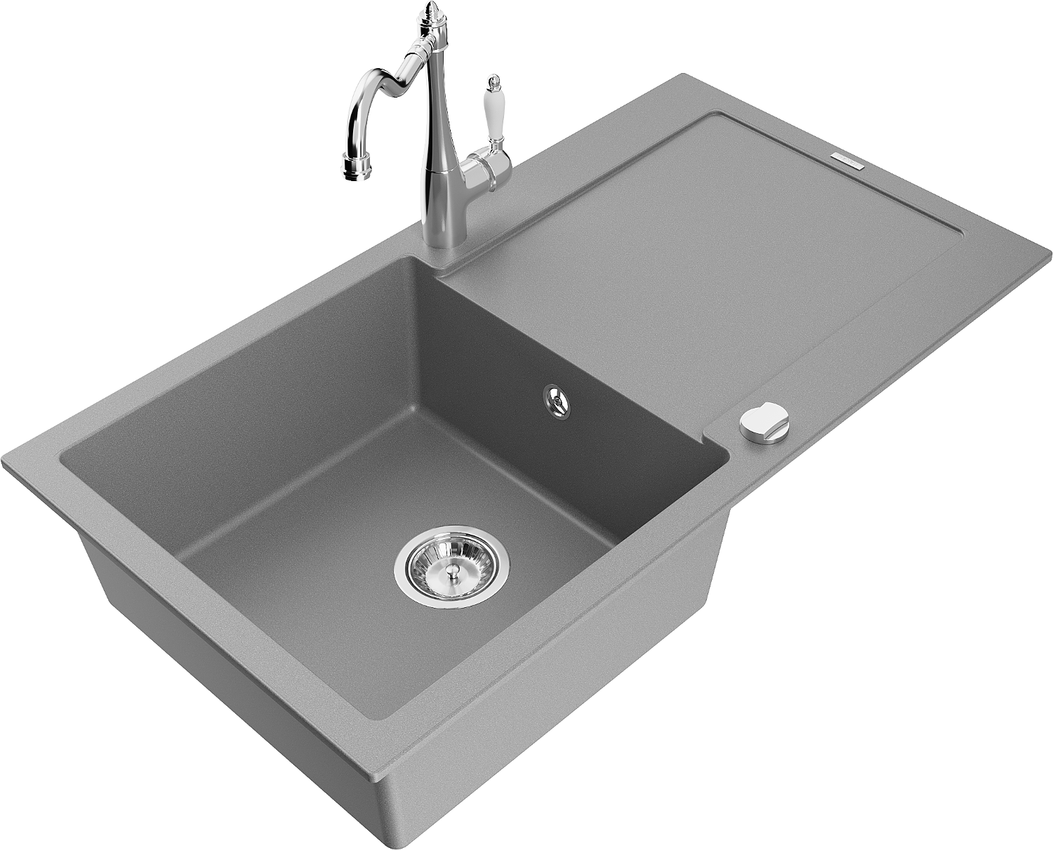 Mexen Leo granīta izlietne ar vienu nodalījumu ar noteces un virtuves jaucējkrānu Carla, pelēka - 6501-71-670700-00