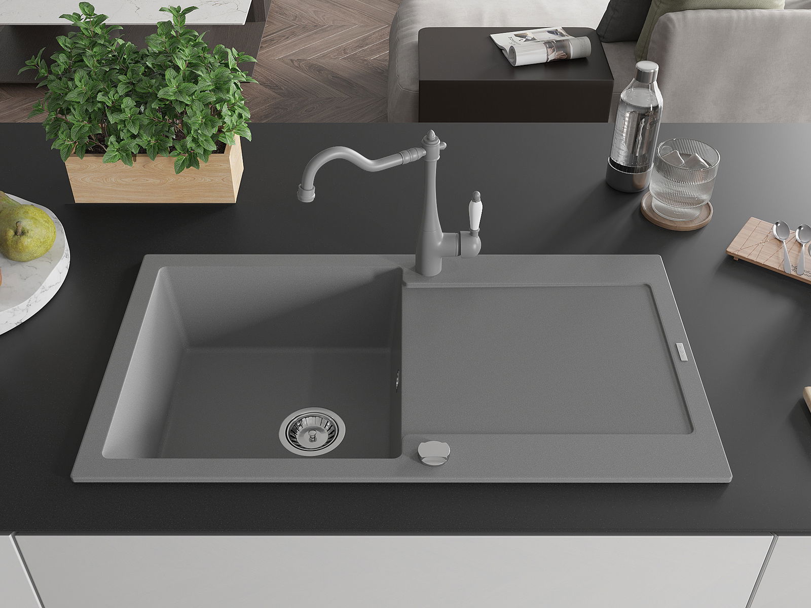 Izlietne ir izgatavota no augstas kvalitātes granīta. Tā ir eleganta un, galvenokārt, praktiska papildinājums jebkurai virtuvei, neatkarīgi no tās stila. Augsta kvalitāte un granīta izturība nodrošina ilgstošu lietošanu.