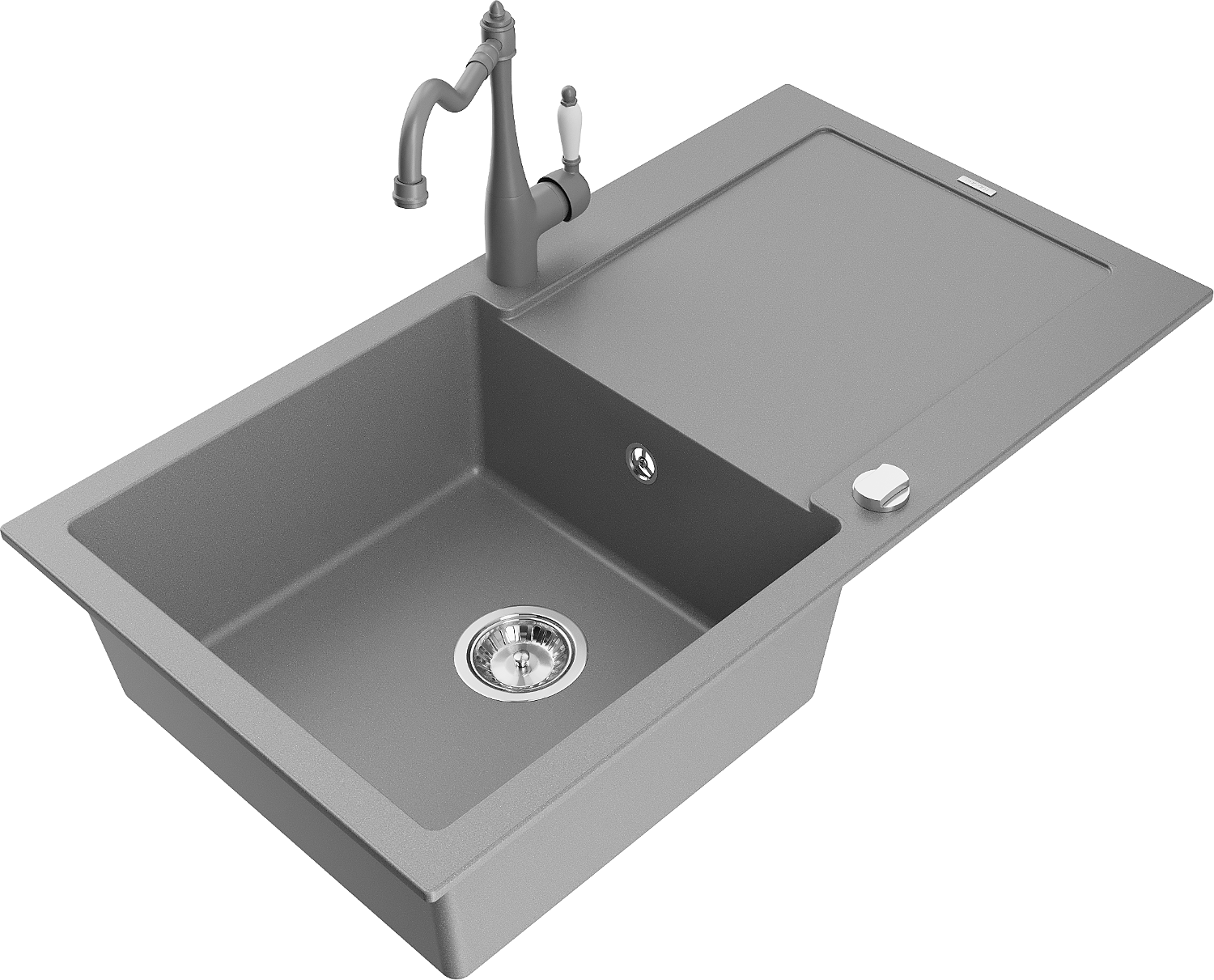Mexen Leo vienas granīta izlietne ar noteces virsmu un virtuves jaucējkrānu Carla, pelēka - 6501-71-670700-71