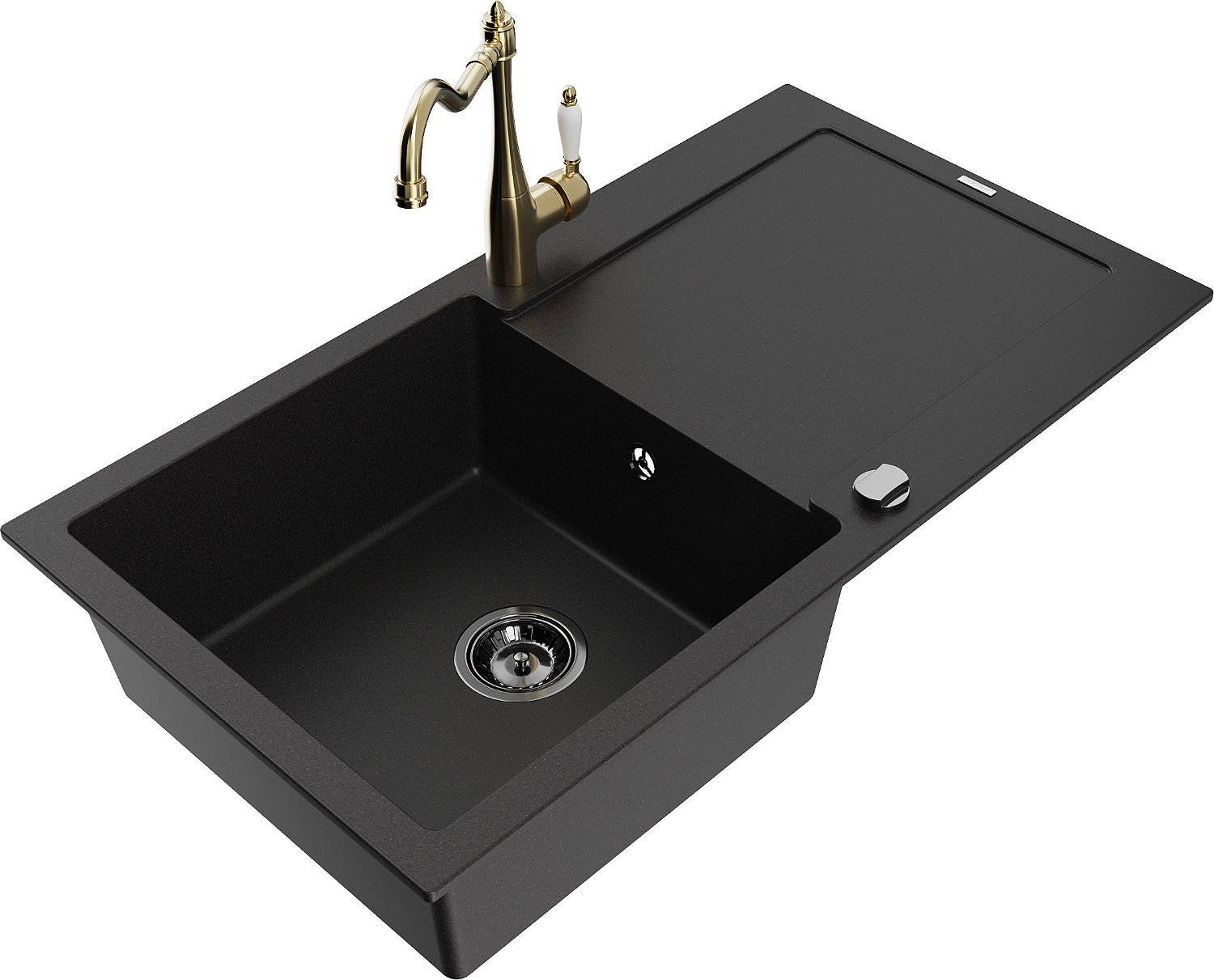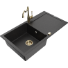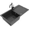 Mexen Leo granitais izlietne ar vienu nodalījumu, noteces un virtuves jaucējkrānu Carla, melns - 6501-77-670700-50-B