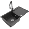 Mexen Leo granitā izlietne ar 1 nodalījumu, noteces plāksni un virtuves jaucējkrānu Savita, balta - 6501-20-672601-20