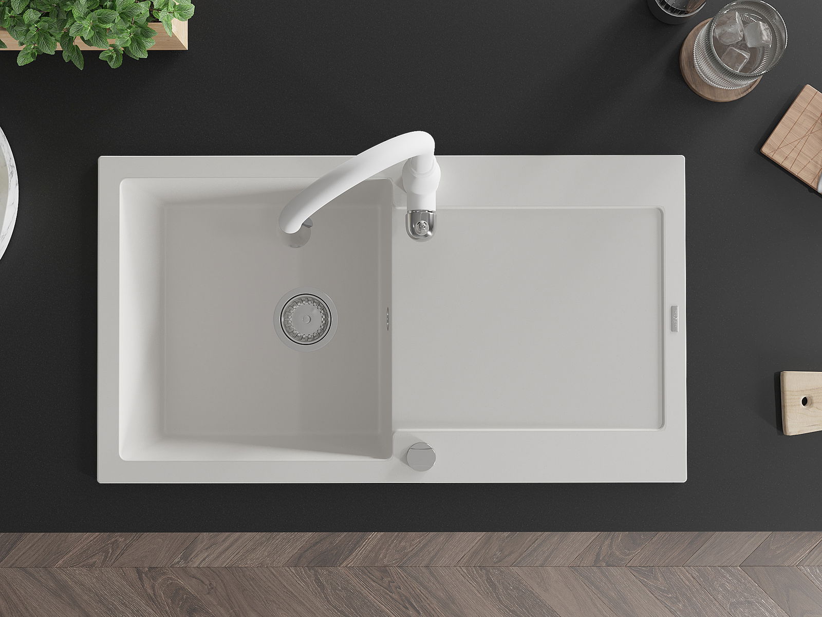 Izlietnes virsma ir izturīga pret traipiem un krāsas izmaiņām, tāpēc to ir viegli uzturēt tīru un tā saglabā savu krāsu ilgu lietošanas laiku. Estētiski un praktiski papildina jebkuru virtuvi.