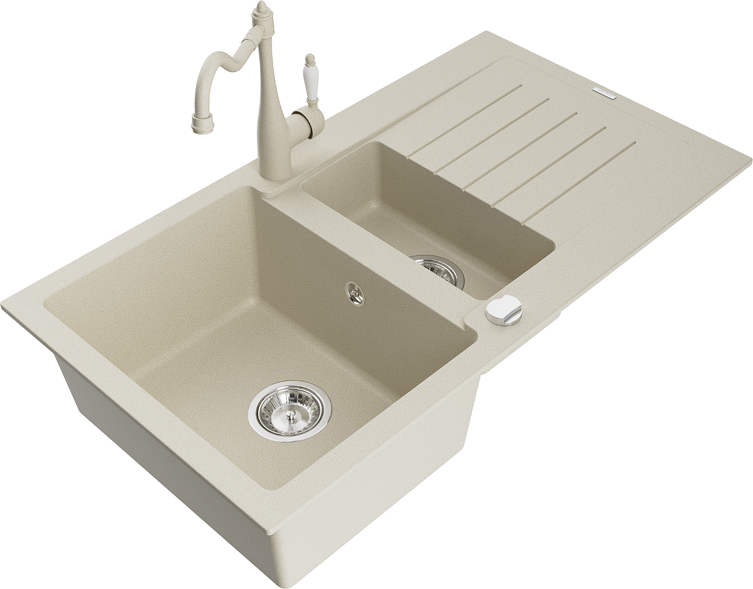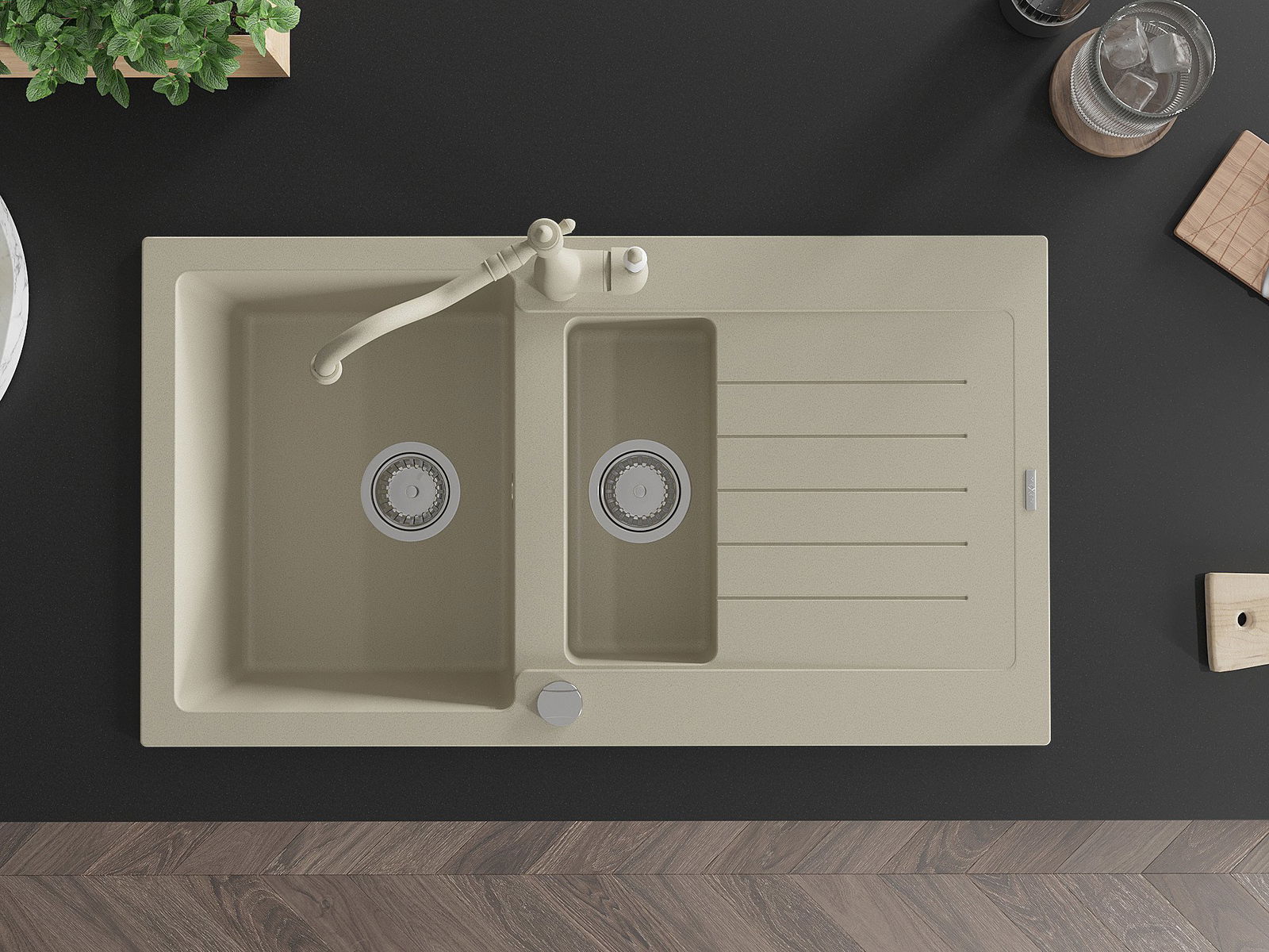 Mexen Matias 1,5 nodalējumu granīta izlietne ar noteku un virtuves krānu Carla, bēša - 6502-69-670700-69