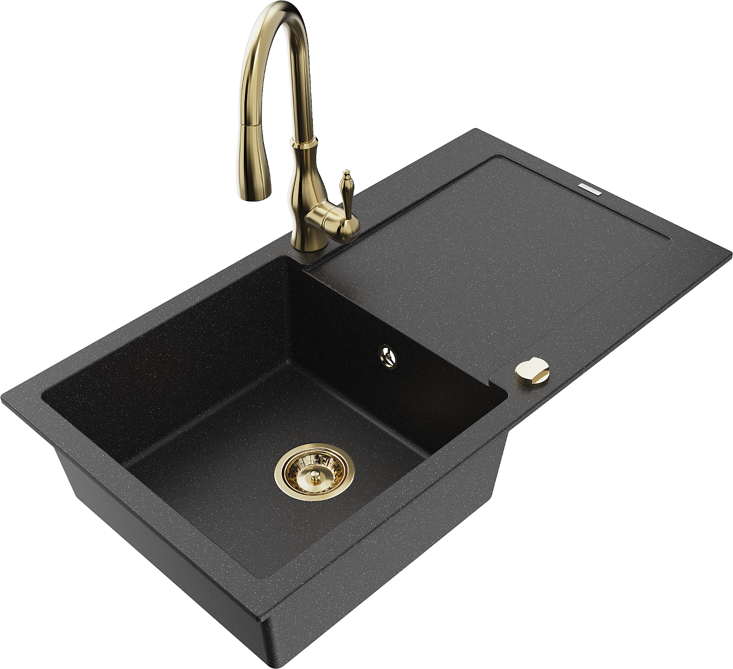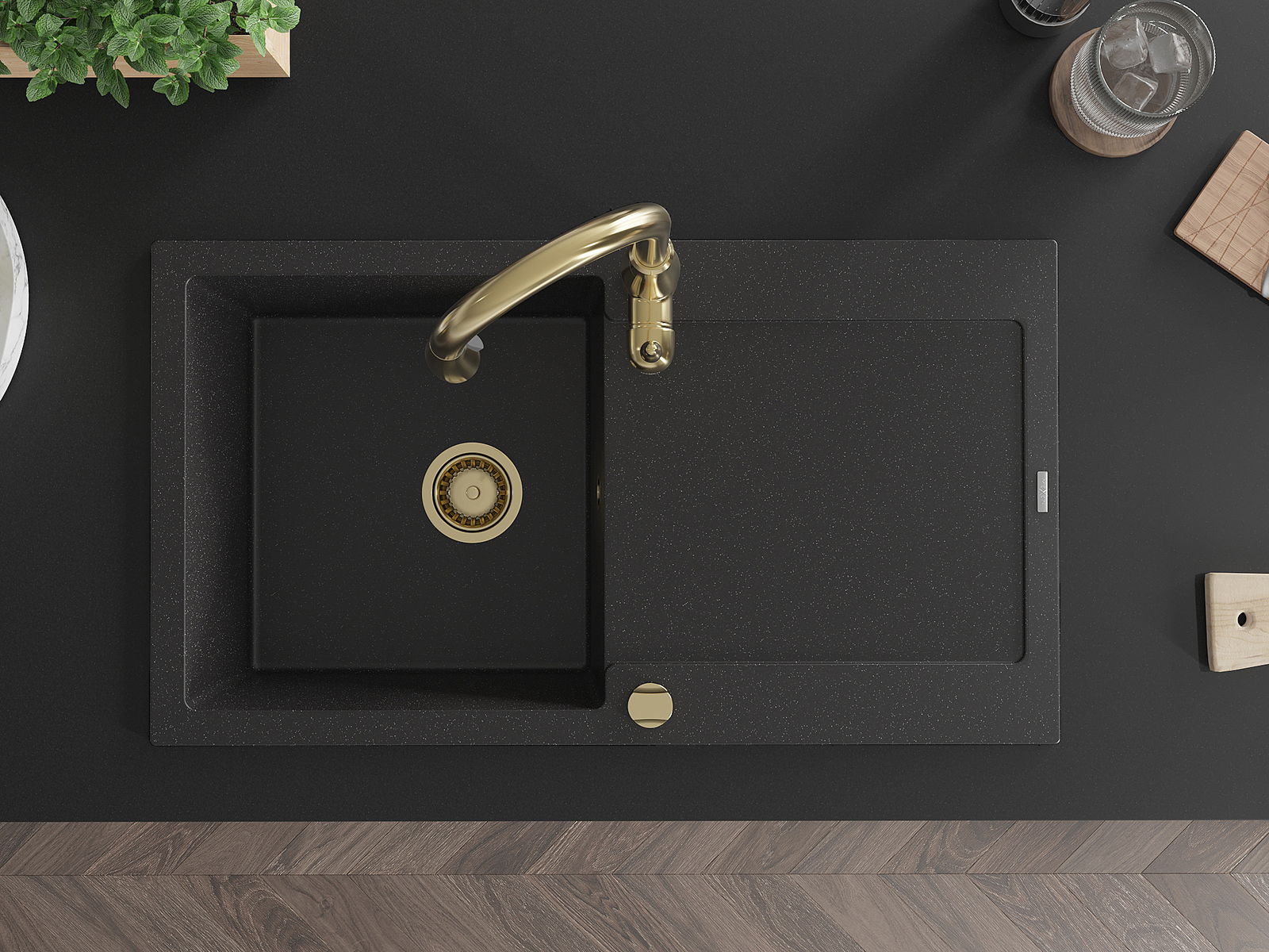 Mexen Leo granta izlietne ar vienu nodalījumu un nožāvētāju un virtuvēm - Savita, melnā/sudraba metāliks