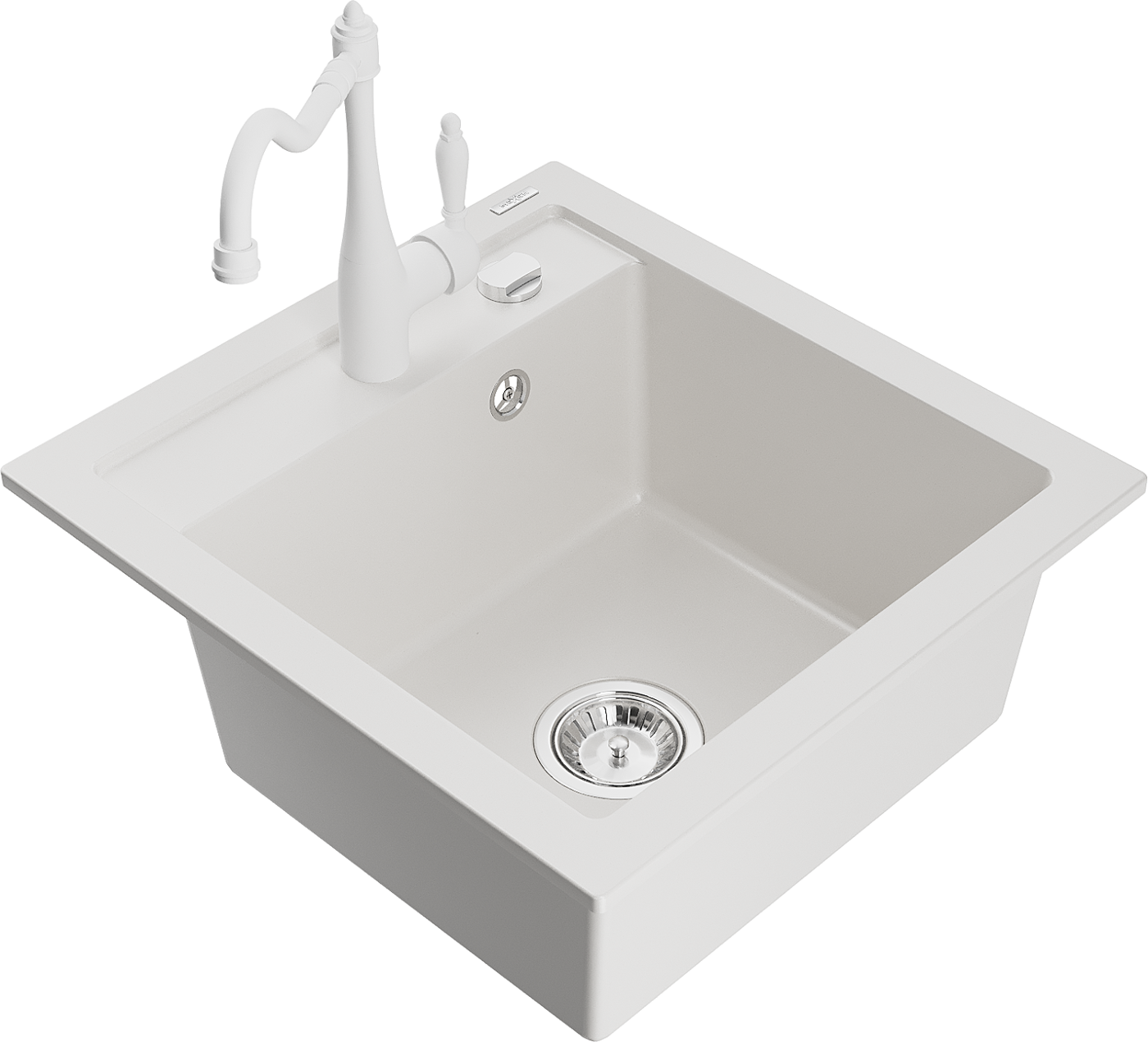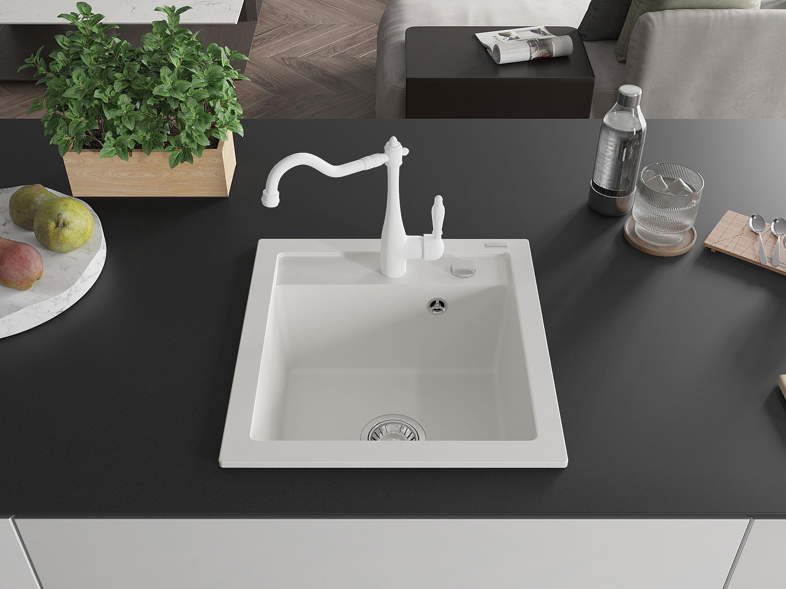 Mexen Vito 1-kameru granīta izlietne ar virtuve jaucējkrānu Carla, balta - 6503-20-670700-20