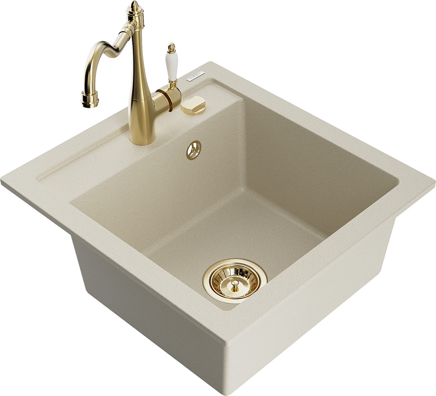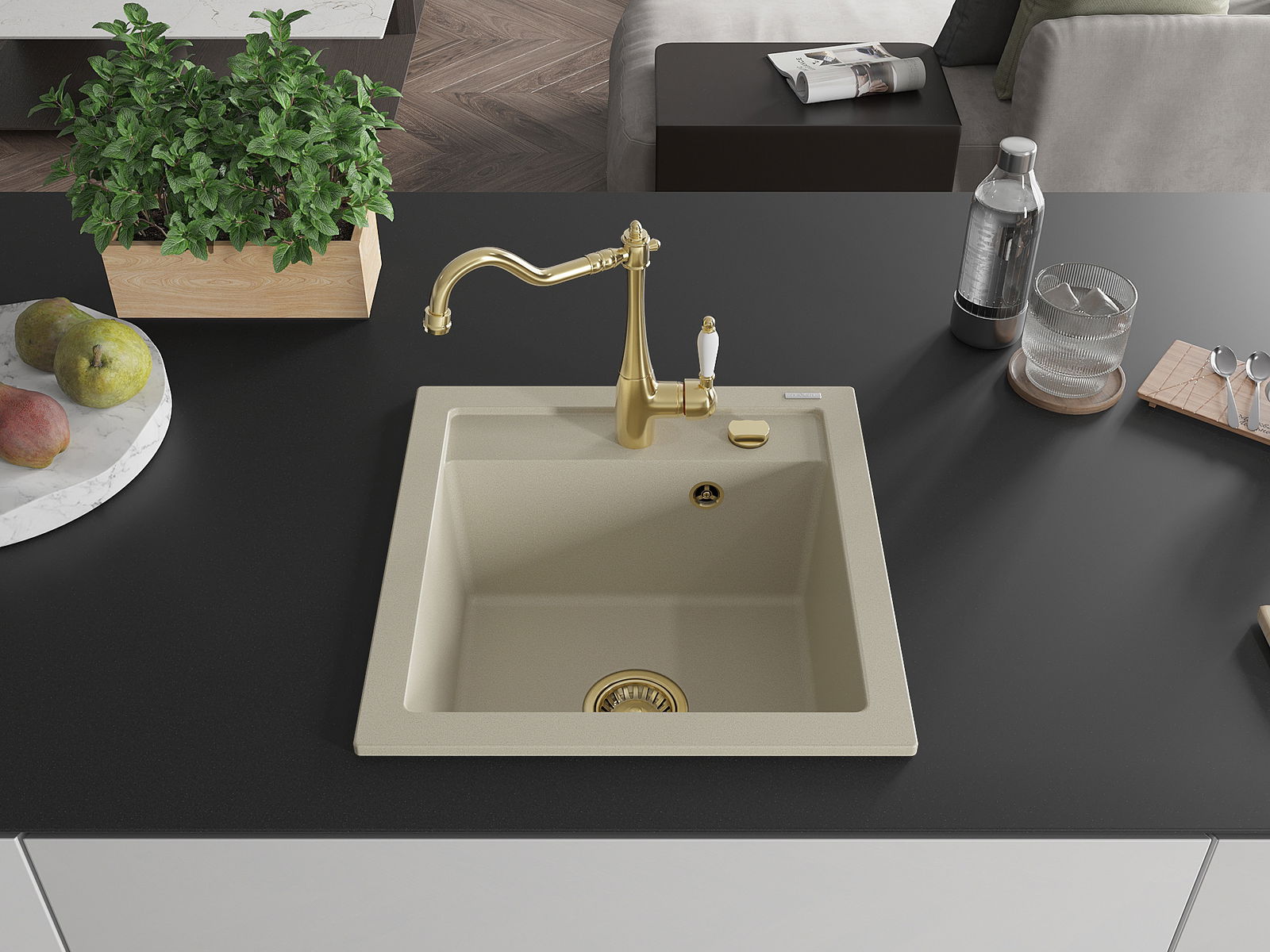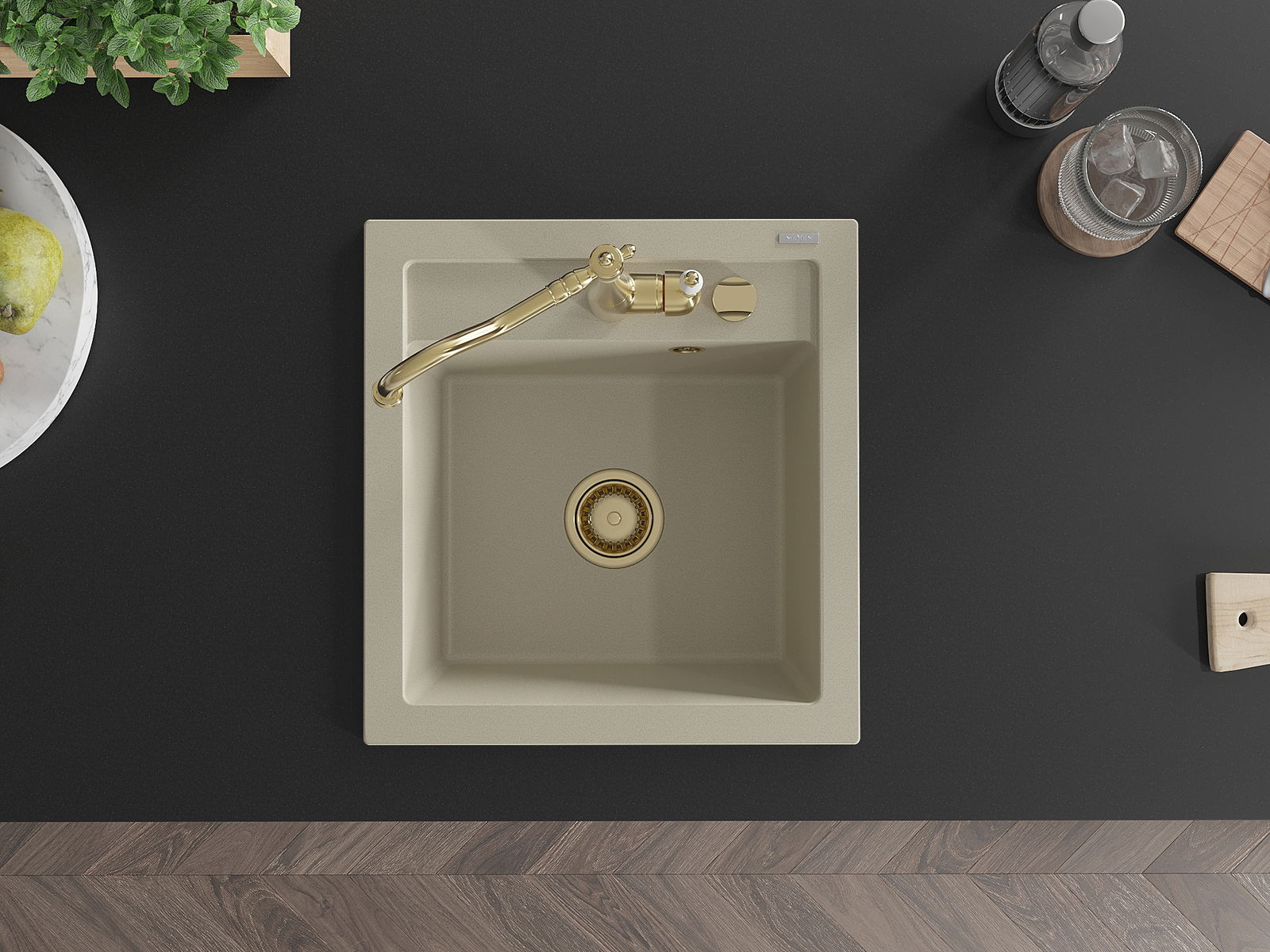 Mexen Vito vienasistabas granīta virtuves izlietne ar jaucējkrānu Carla, bēša - 6503-69-670700-50