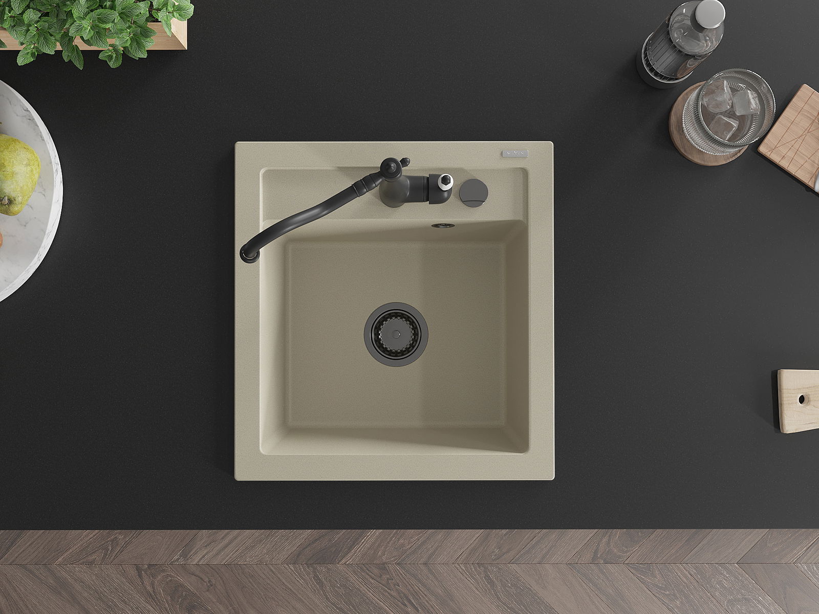 Mexen Vito granitizlietne ar 1 nodalījumu un virtuves jaucējkrānu Carla, bēša - 6503-69-670700-70