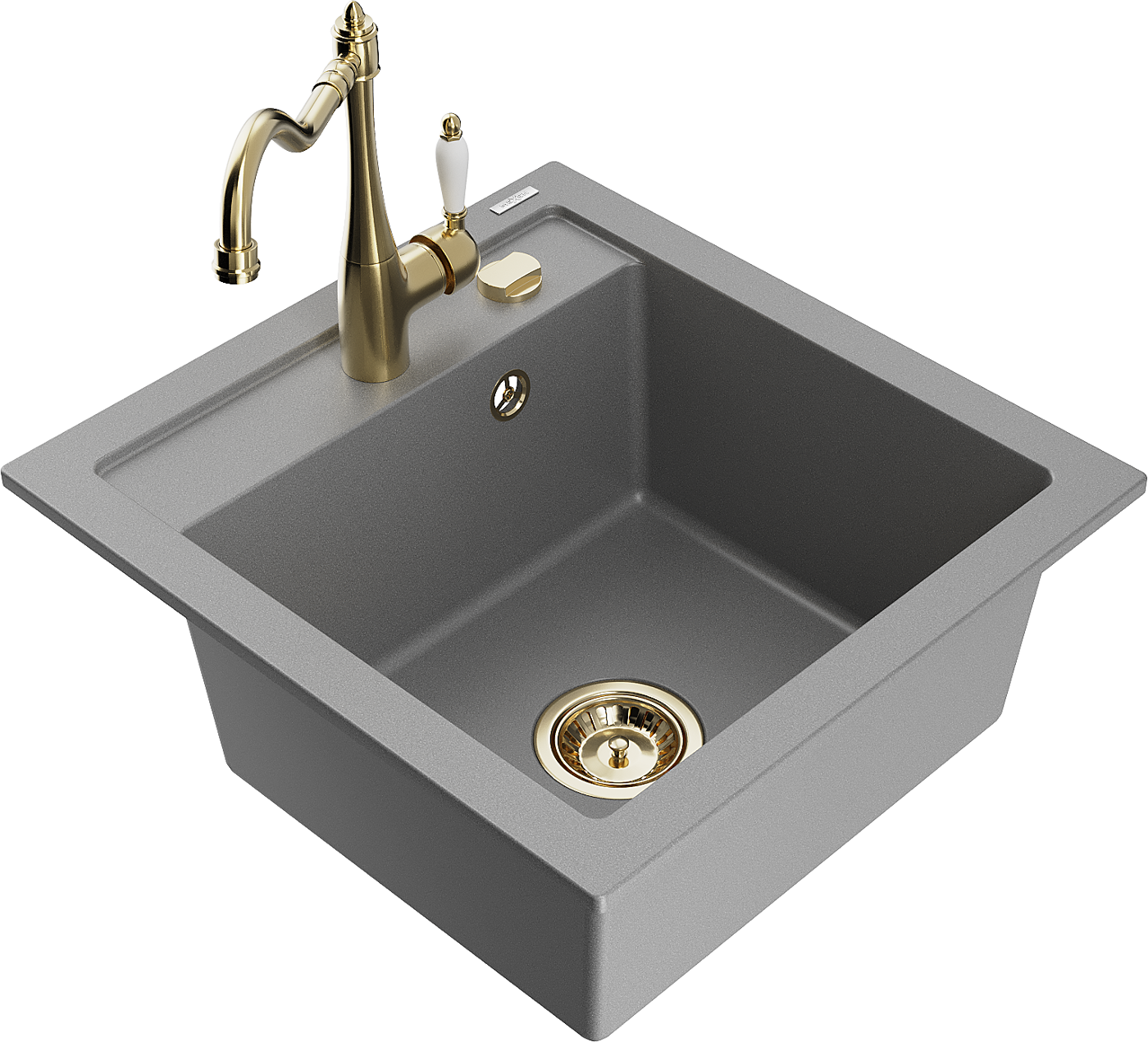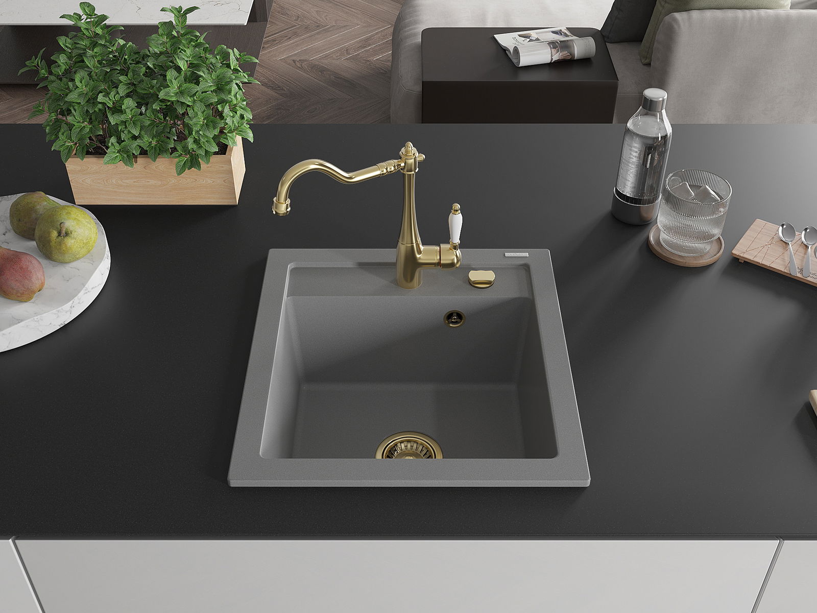 Mexen Vito vienkameras granīta izlietne ar virtuves jaucējkrānu Carla, pelēka - 6503-71-670700-50
