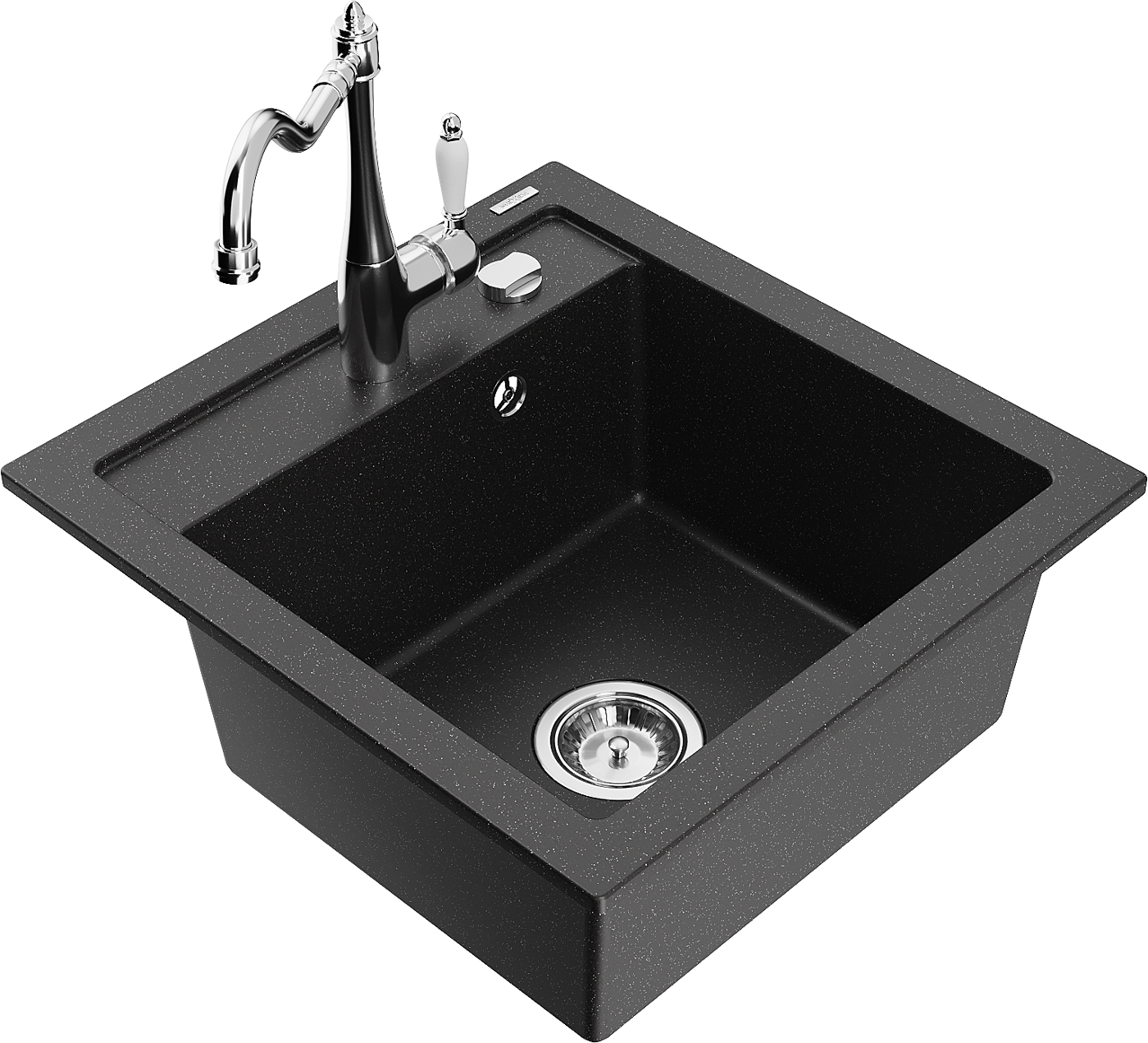 Mexen Vito granitē izlietne ar vienu nodalījumu un virtuves krānu Carla, melns/sudraba metālika - 6503-73-670700-00