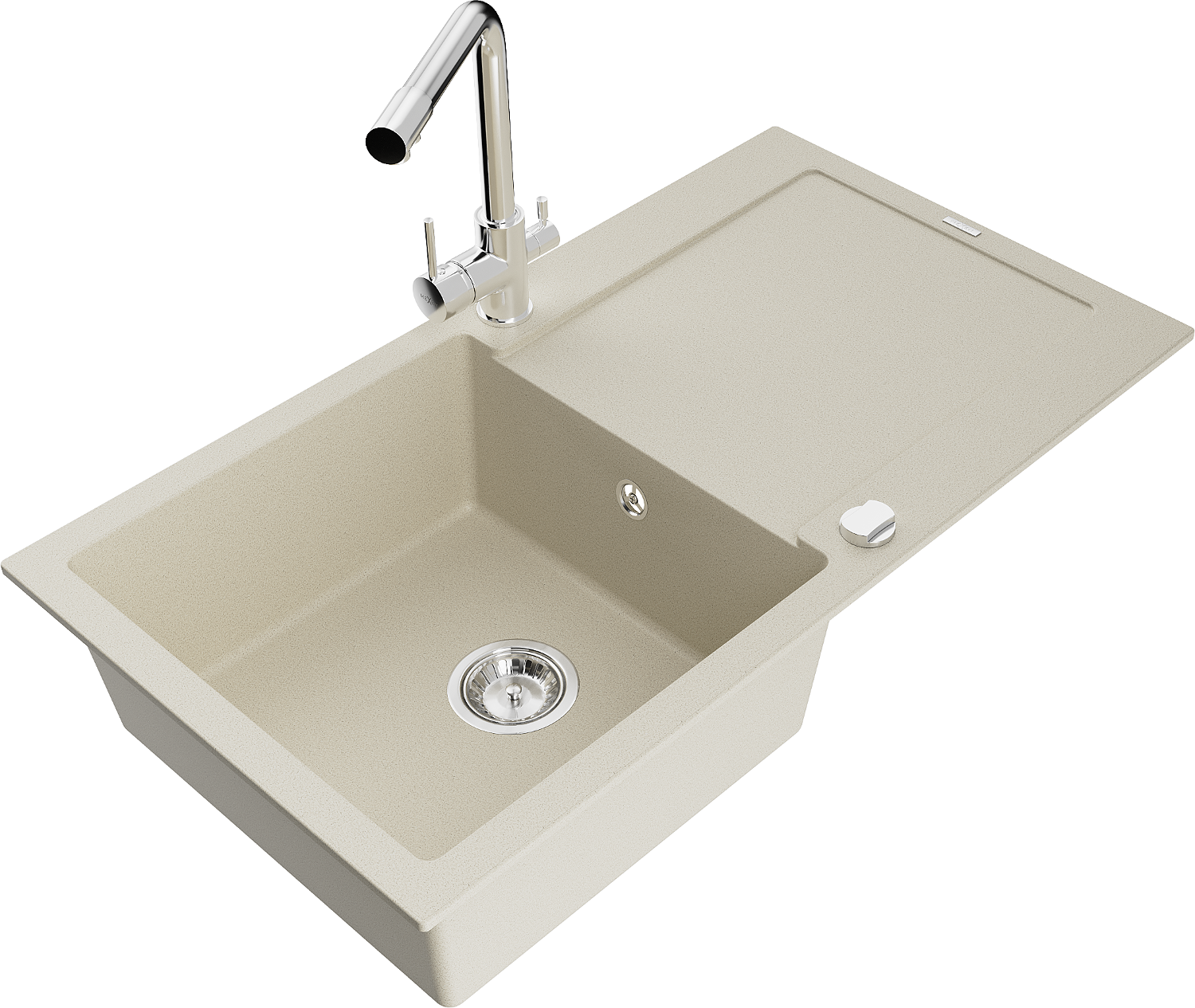 Mexen Leo granitīgs izlietne ar vienu nodalījumu ar noteces plauktu un virtuves jaucējkrānu Duero, bēša - 6501-69-671600-00
