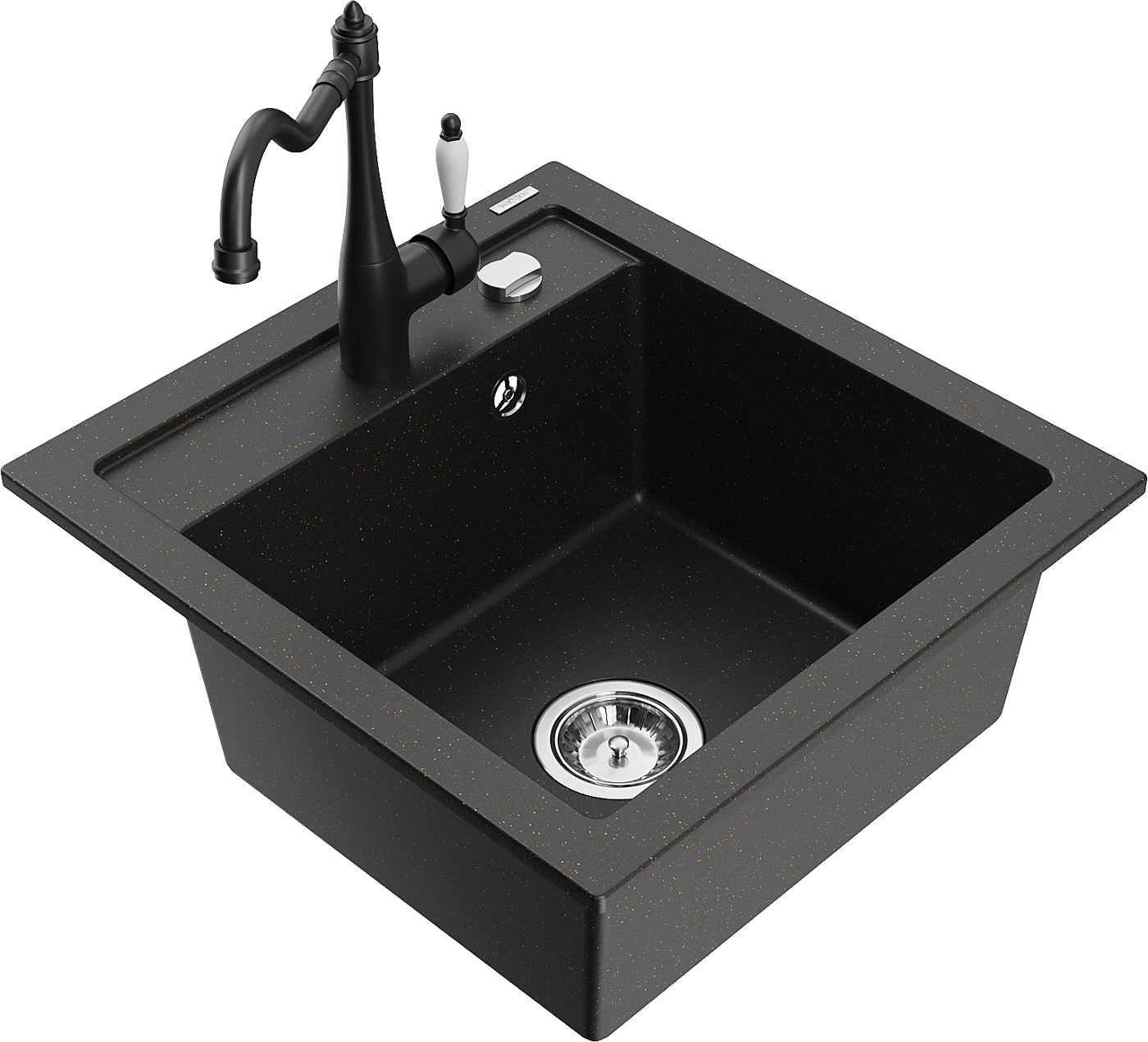 Mexen Vito granitizlietne izlietne ar 1 nodalījumu un virtuves jaucējkrānu Carla, melns/zelta metāliks - 6503-75-670700-70