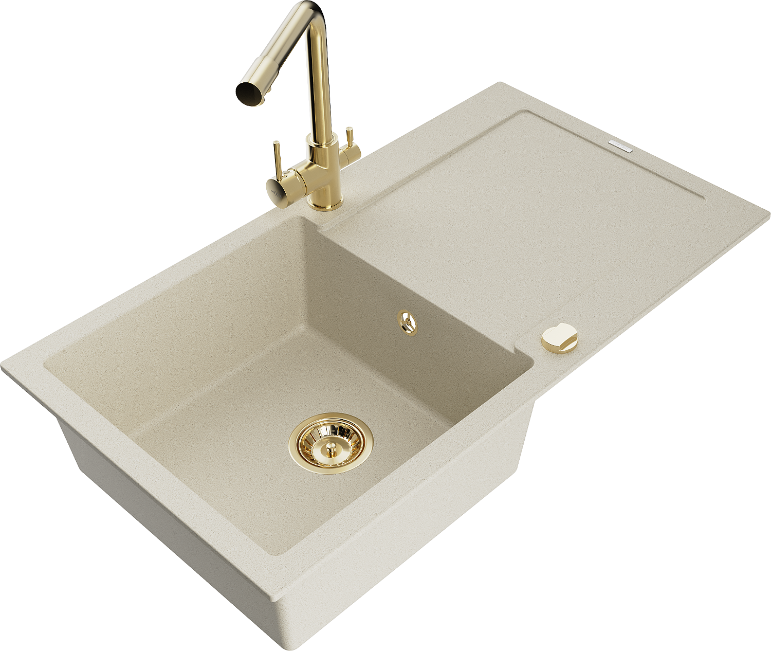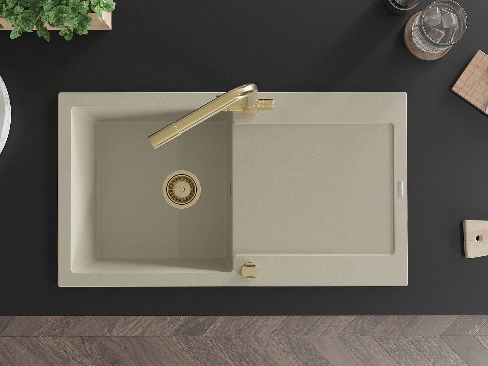Mexen Leo granitizra izlietne ar vienu nodalījumu ar noteci un virtuves jaucējkrānu Duero, bēšs - 6501-69-671600-50