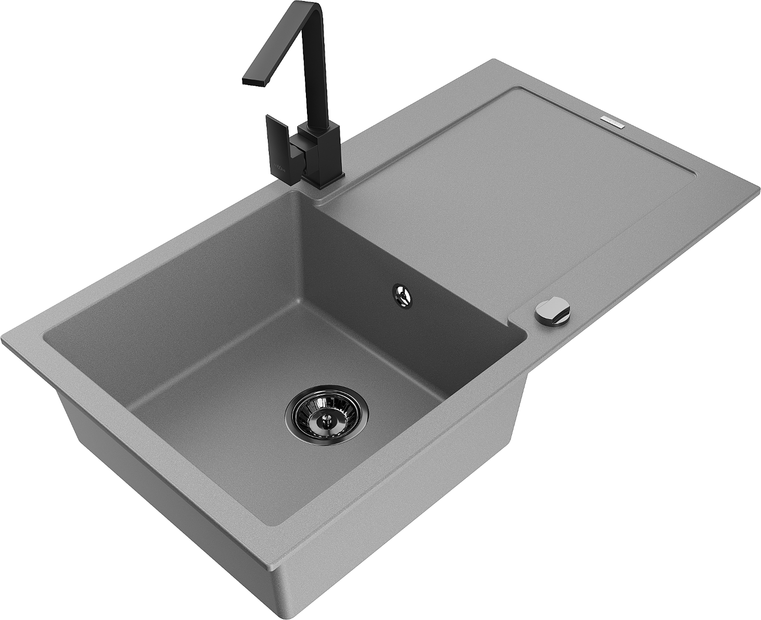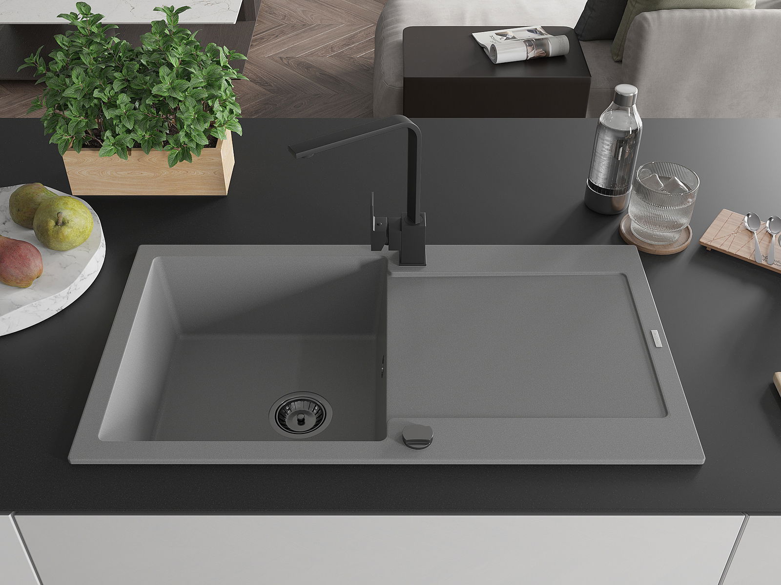 Mexen Leo granitizlietne ar 1 nodalījumu, ar noteces un virtuves jaucējkrānu Rita, pelēka - 6501-71-670300-70-B