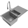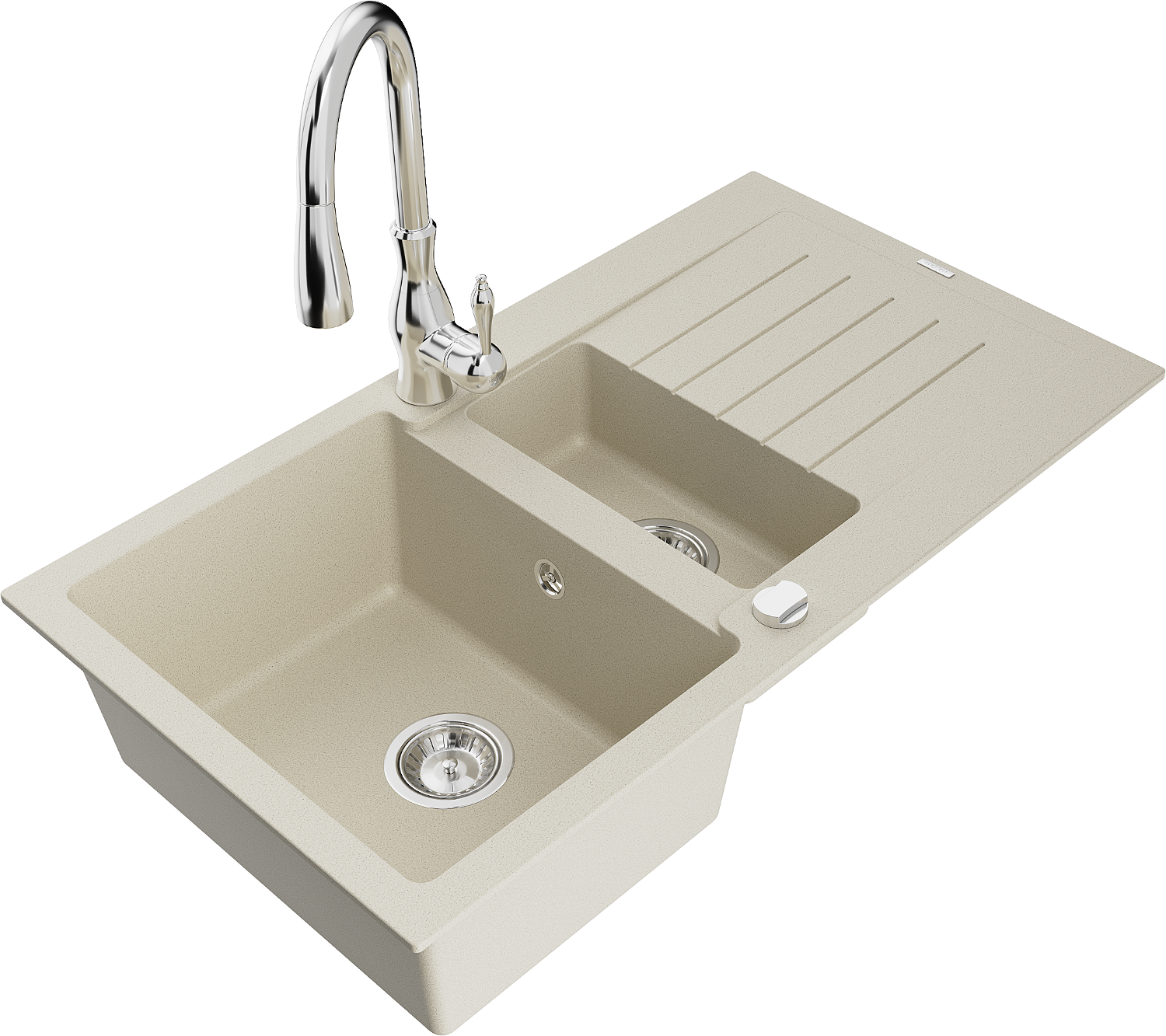 Mexen Matias granitais izlietne ar 1,5 nodalījumu, notecinātāju un virtuves jaucējkrānu Savita, bēšs - 6502-69-672601-00