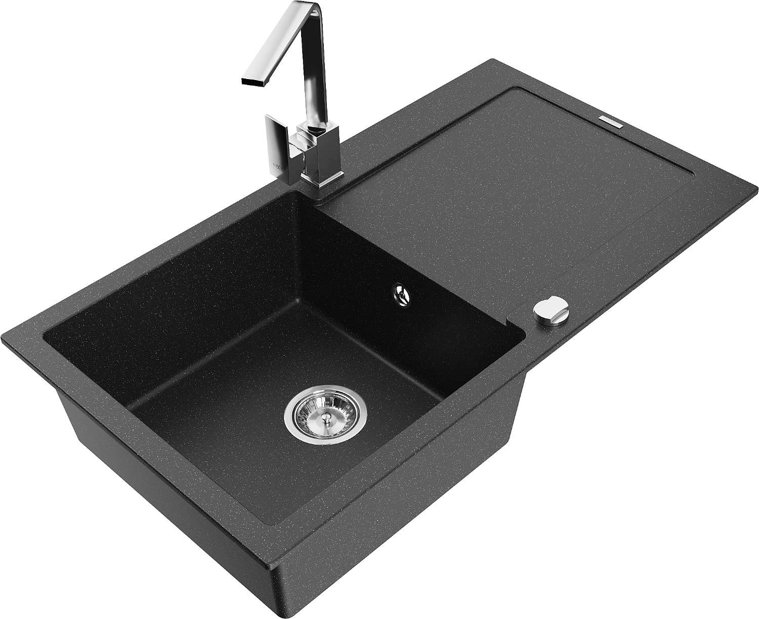 Mexen Leo granit izlietne ar 1 nodalījumu ar noteci un virtuves jaucējkrānu Rita, melna/sudraba metālika - 6501-73-670300-00