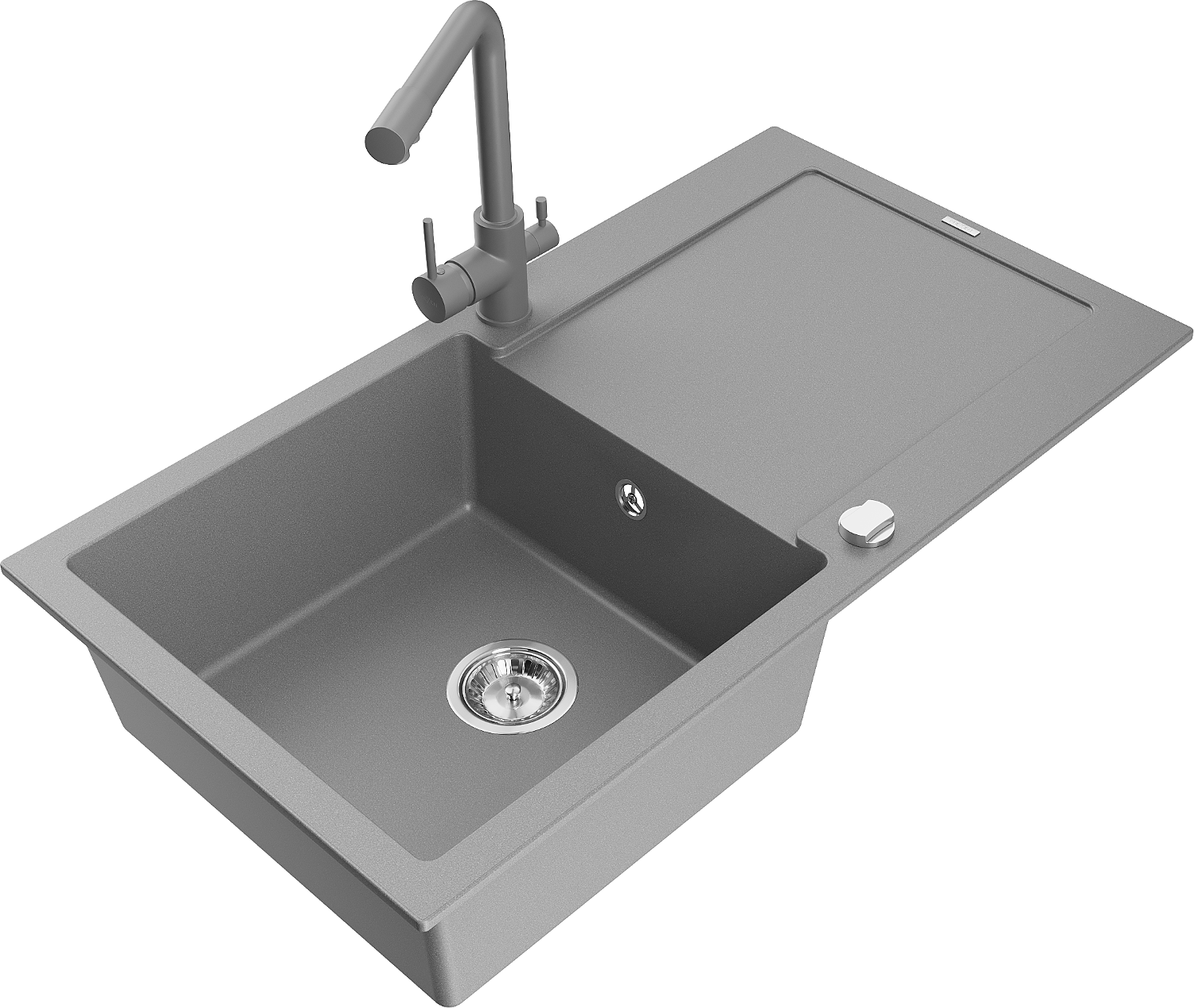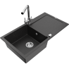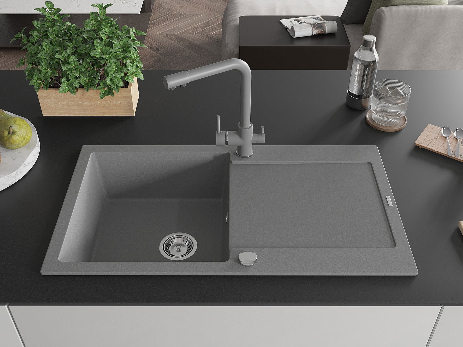Mexen Leo granit izlietne ar 1 nodalījumu un noteces paplāti un virtuves krānu Duero, pelēks - 6501-71-671600-71