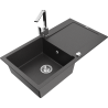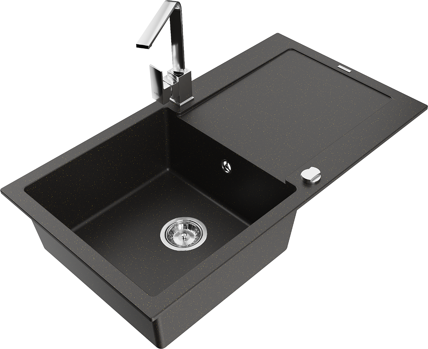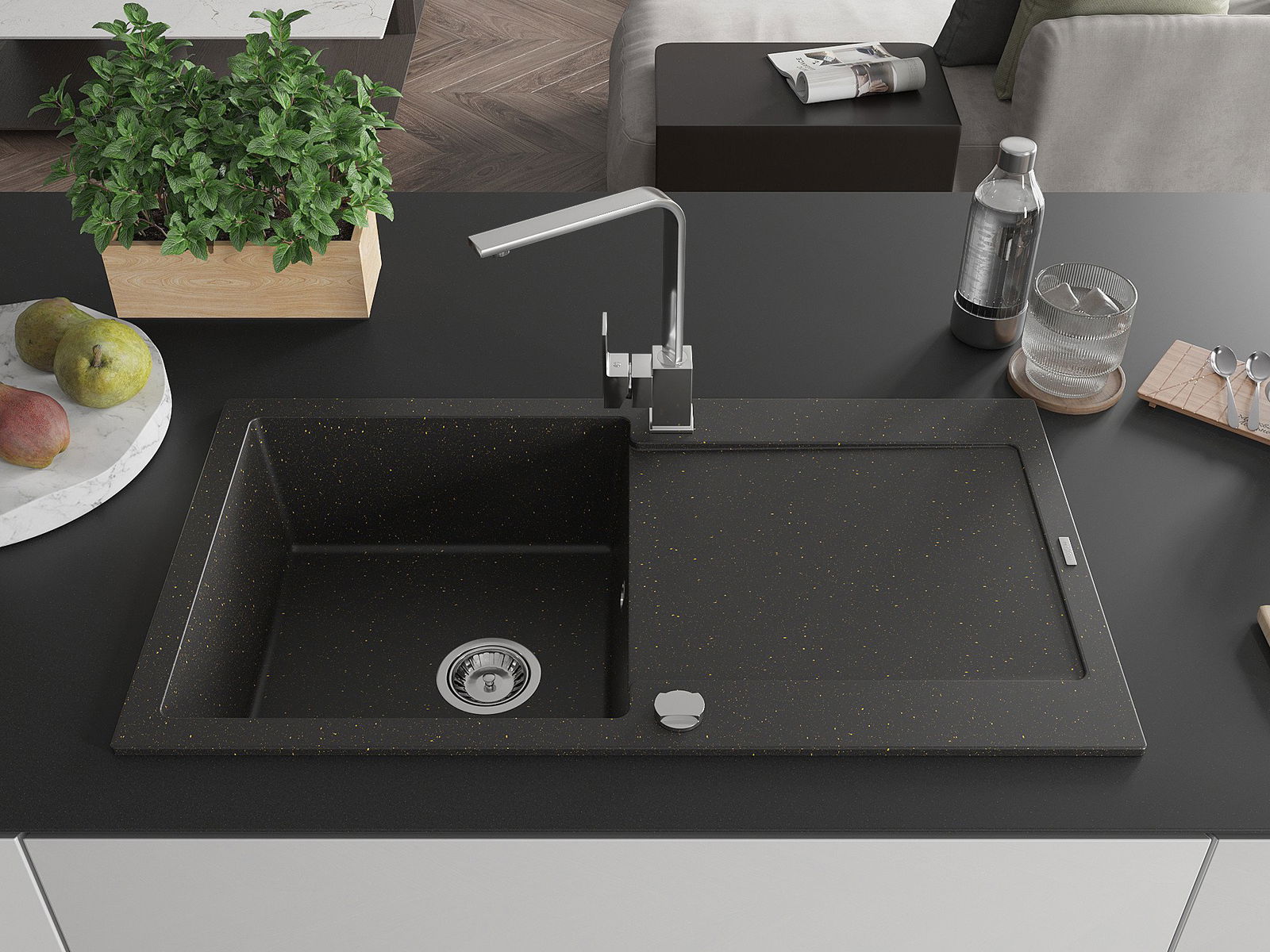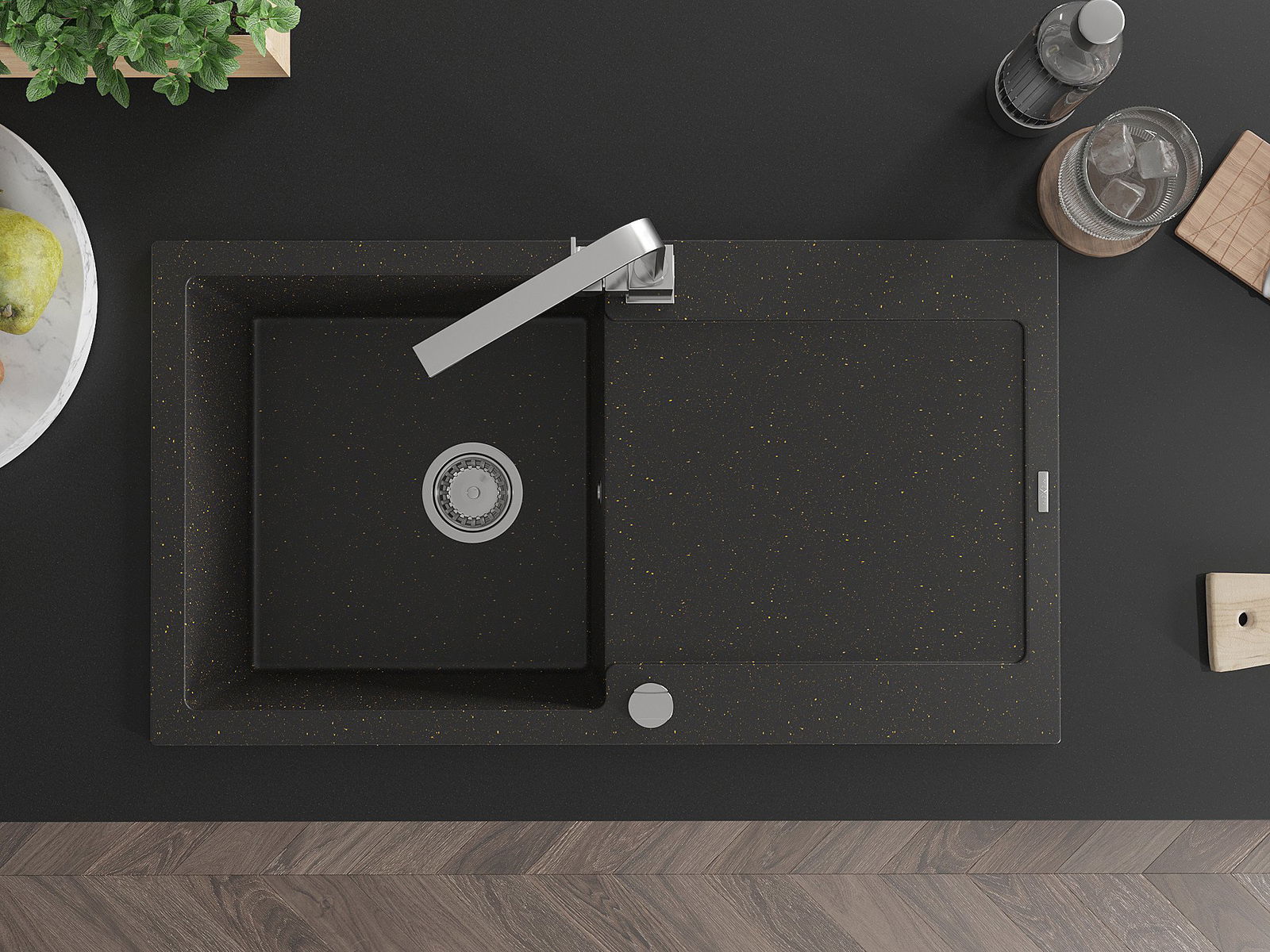Mexen Leo 1 kameru granīta izlietne ar noteku un virtuves krānu Rita, melna/zeltīts metāliks - 6501-75-670300-00