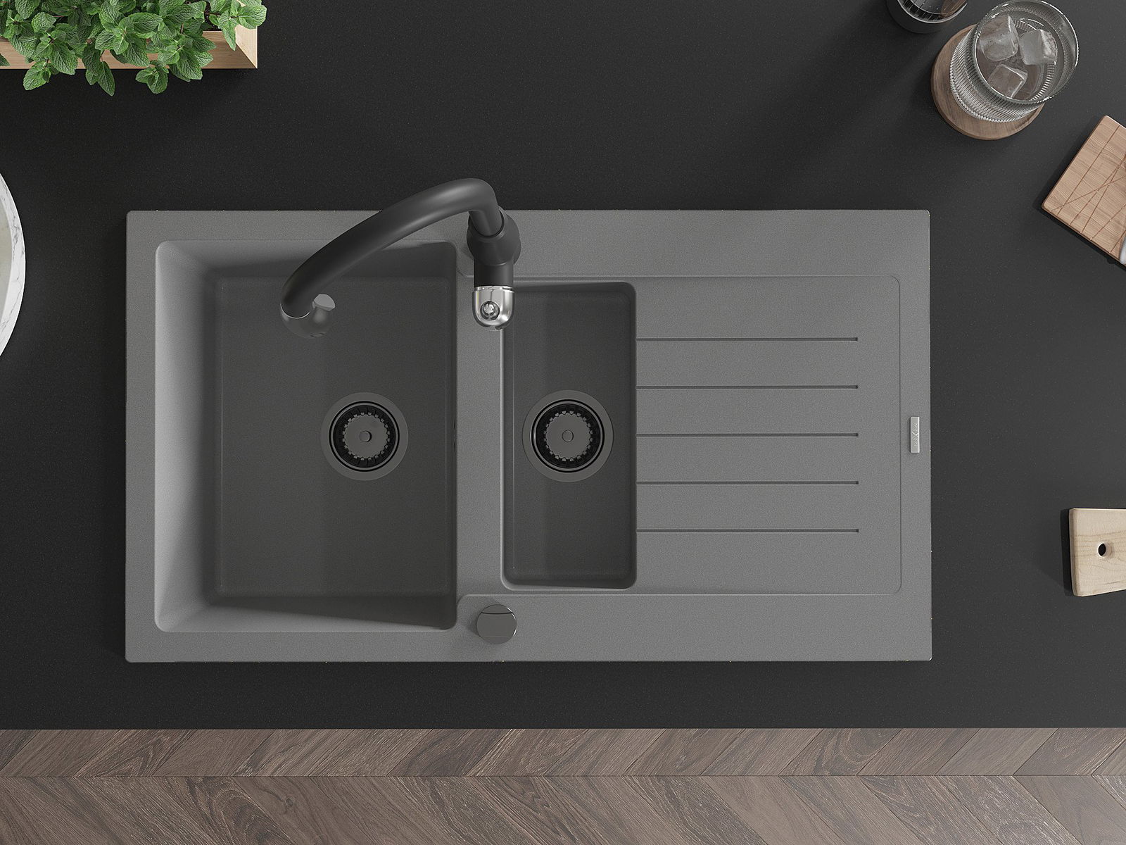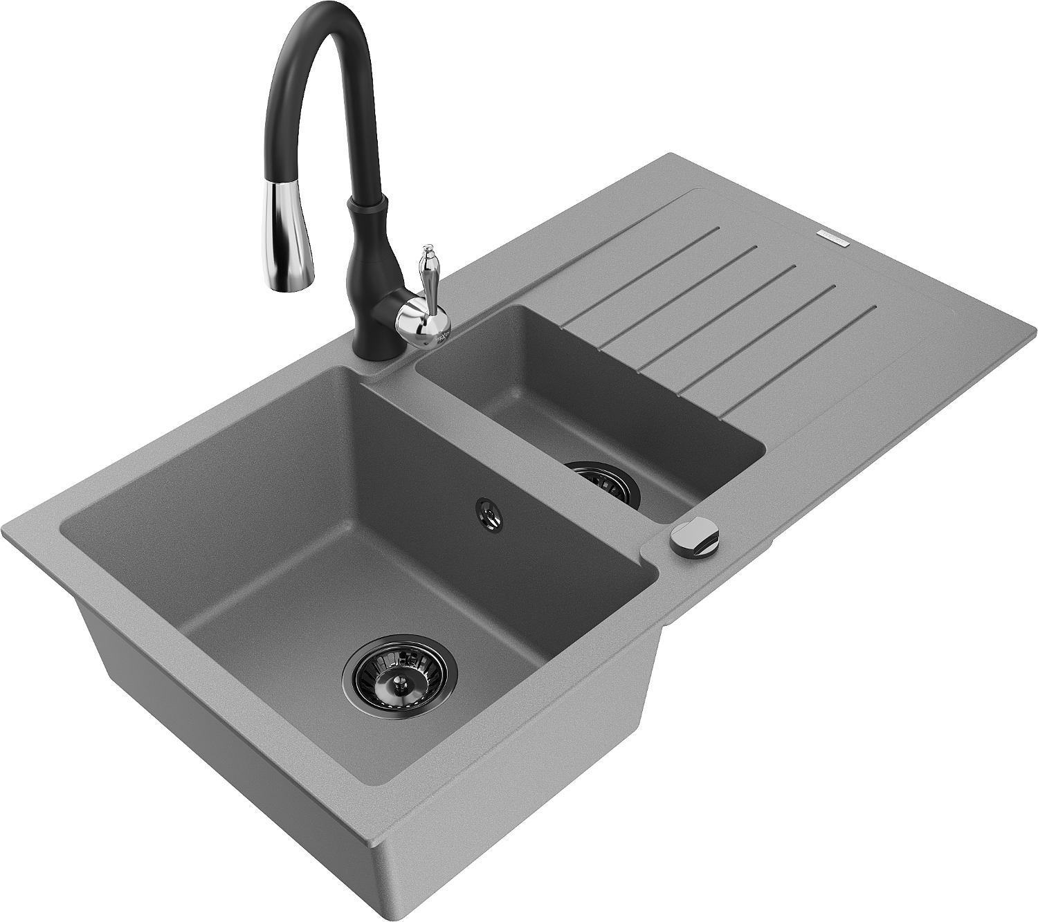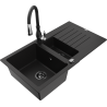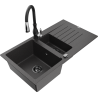 Mexen Matias granīta izlietne ar 1,5 nodalījumiem, notecinātāju un virtuves maisītāju Savita, pelēka