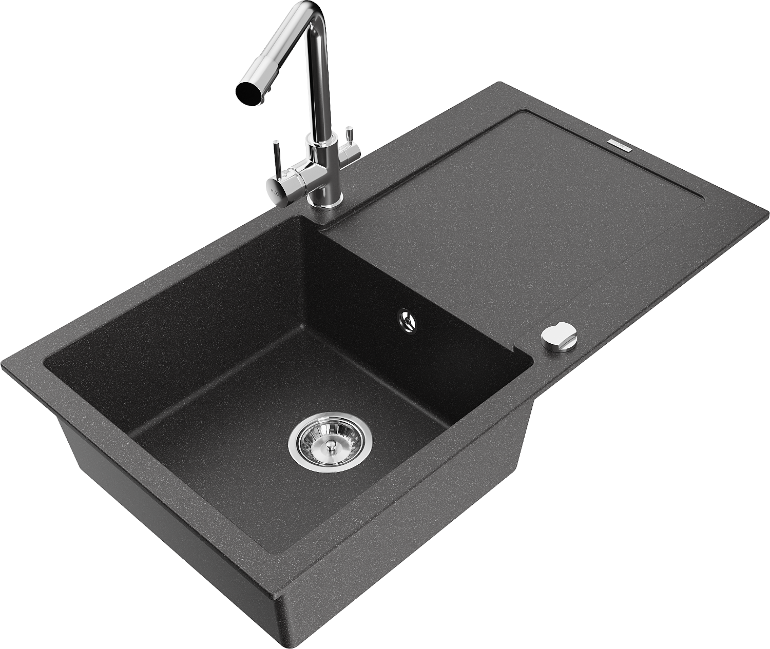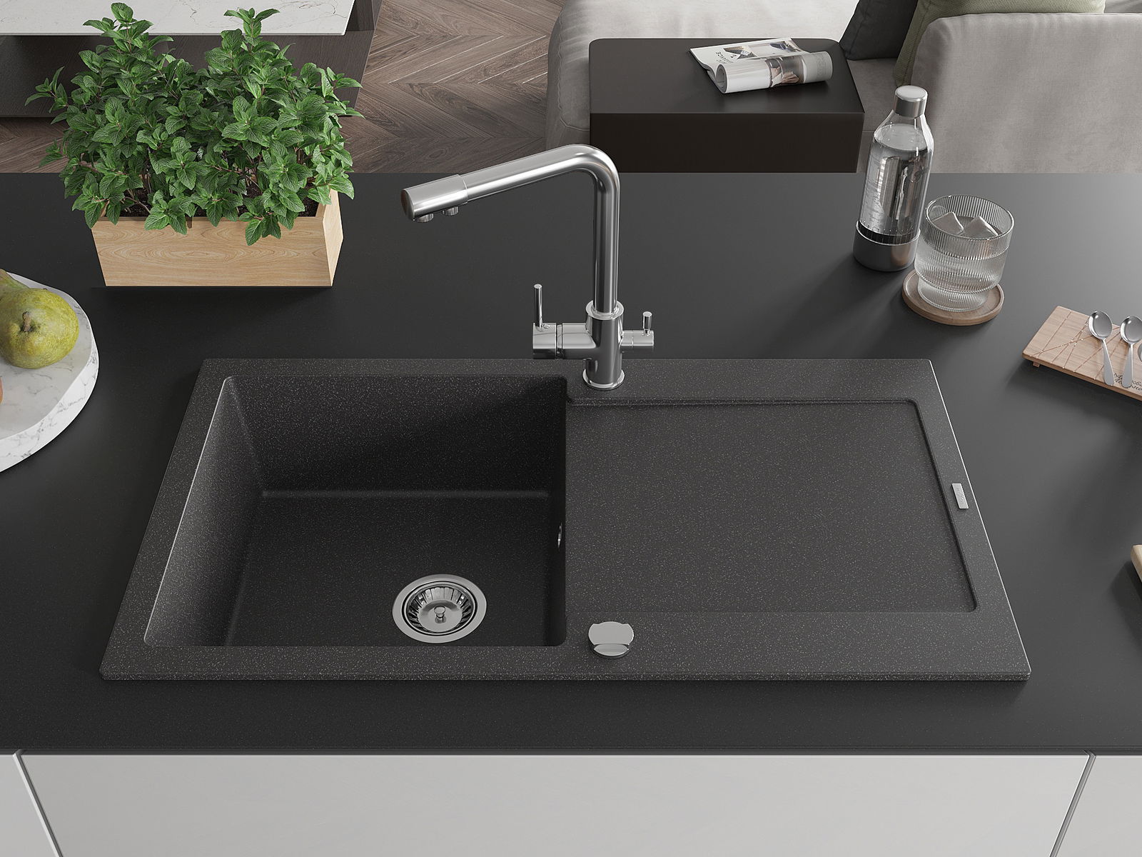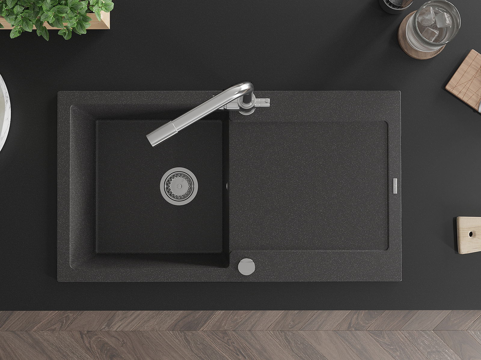 Mexen Leo granitizlietne viena nodalījuma ar noteku un virtuves krānu Duero, melns raibais - 6501-76-671600-00
