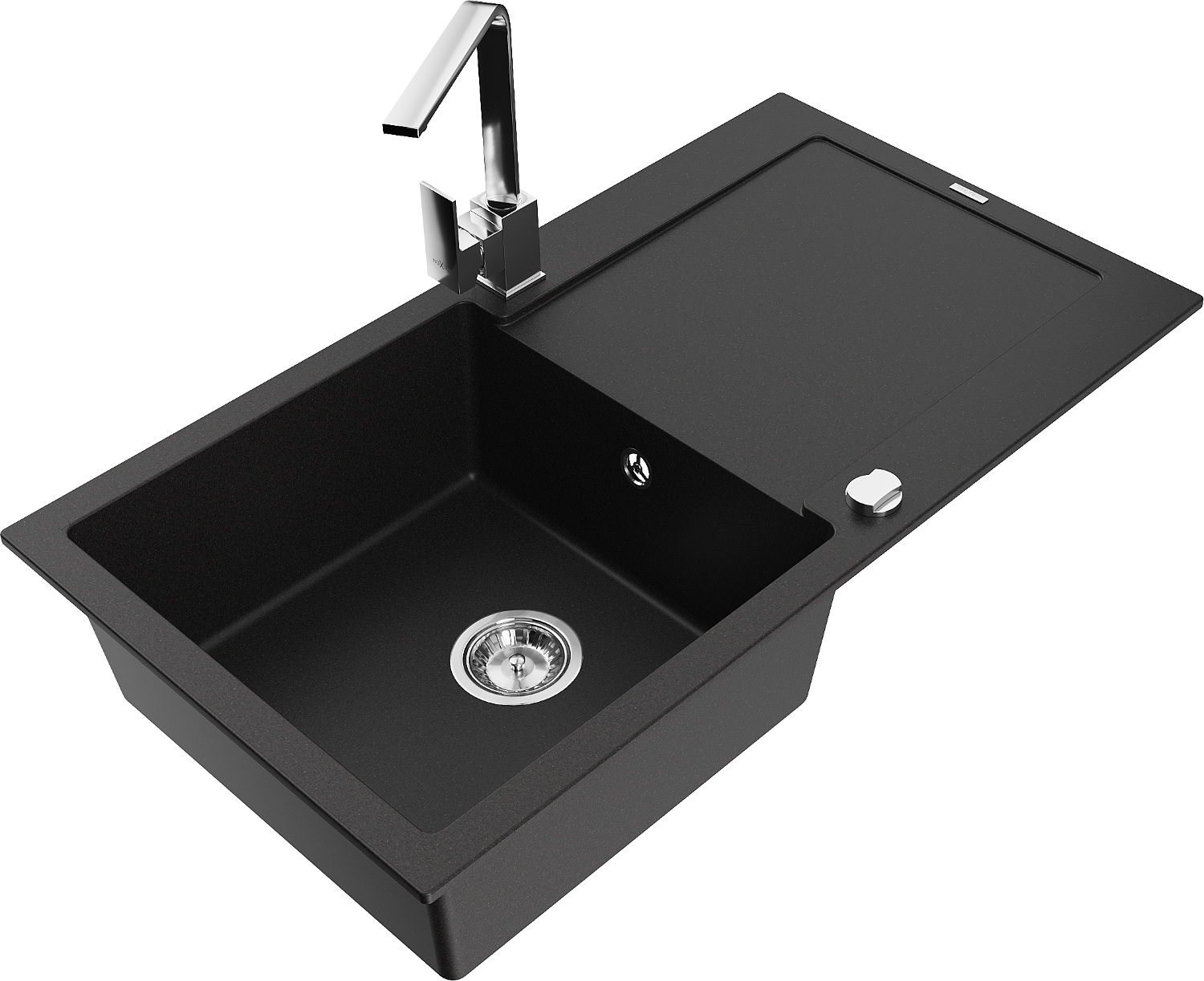 Mexen Leo granitēta izlietne ar vienu nodalījumu, noteces un virtuves jaucējkrānu Rita, melna - 6501-77-670300-00