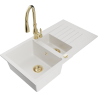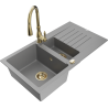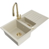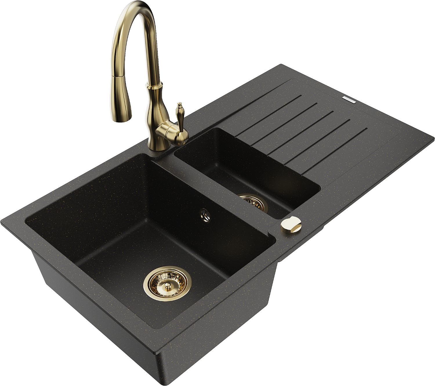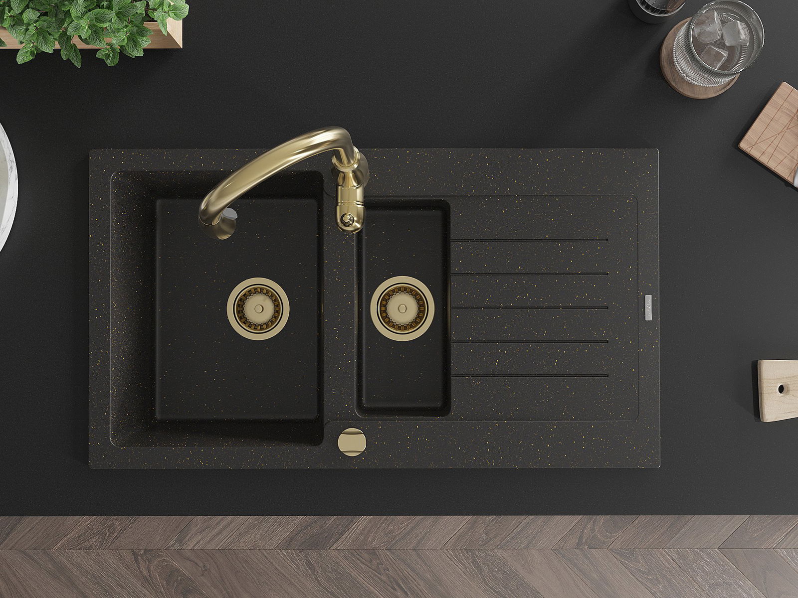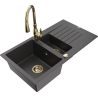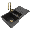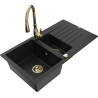 Mexen Matias granitais izlietne, 1,5 kameras ar notekas zonu un virtuves jaucējkrānu Savita, melns/zelts - 6502-75-672601-50