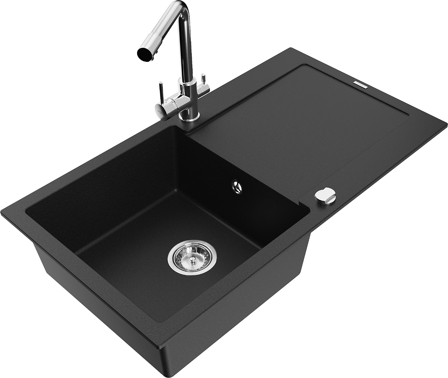 Mexen Leo granit izlietne ar 1 nodalījumu, notecinātāju un virtuves jaucējkrānu Duero, melna - 6501-77-671600-00