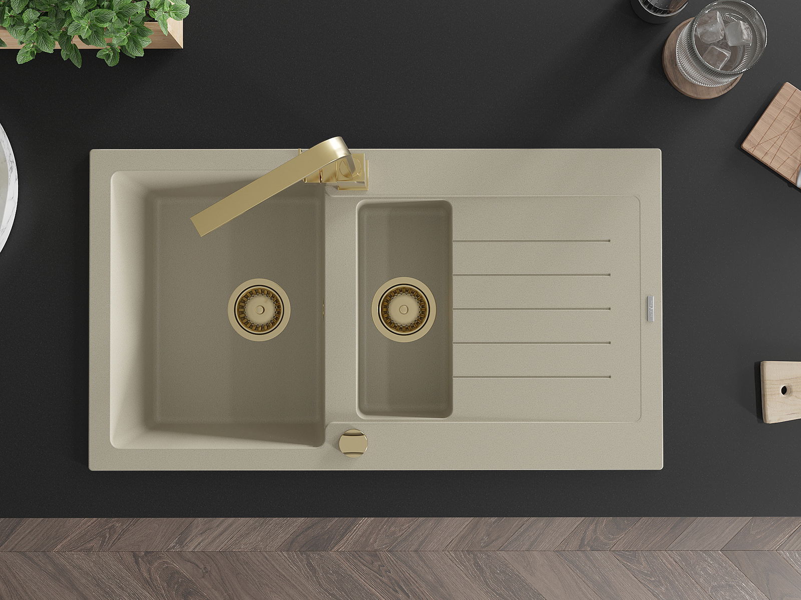 Mexen Matias granīta izlietne 1,5 nodalījuma ar noteku un Rita virtuves jaucējkrānu, bēša - 6502-69-670300-50