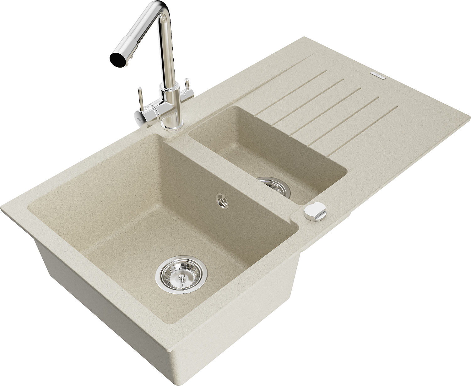 Mexen Matias 1,5 sekciju granīta izlietne ar noteces paliktni un virtuves jaucējkrānu Duero, bēša - 6502-69-671600-00