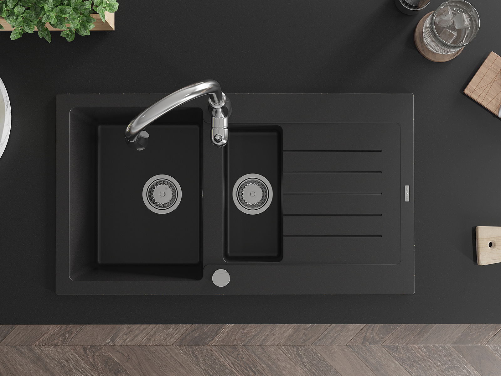 Mexen Matias granitizlietne 1,5-nodaloma ar noteku un virtuves jaucējkrānu Savita, melns - 6502-77-672601-00