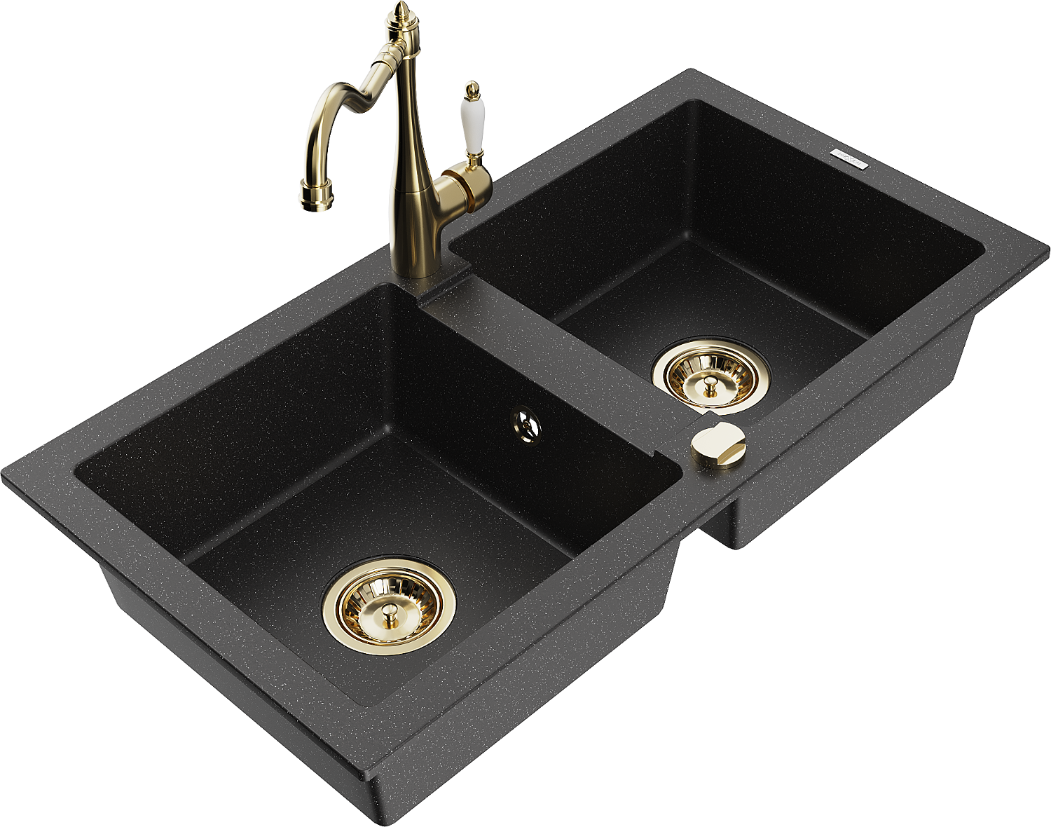 Mexen Mario 2 kameru granīta izlietne ar virtuves jaucējkrānu Carla, melns/sudraba metāliks - 6504-73-670700-50