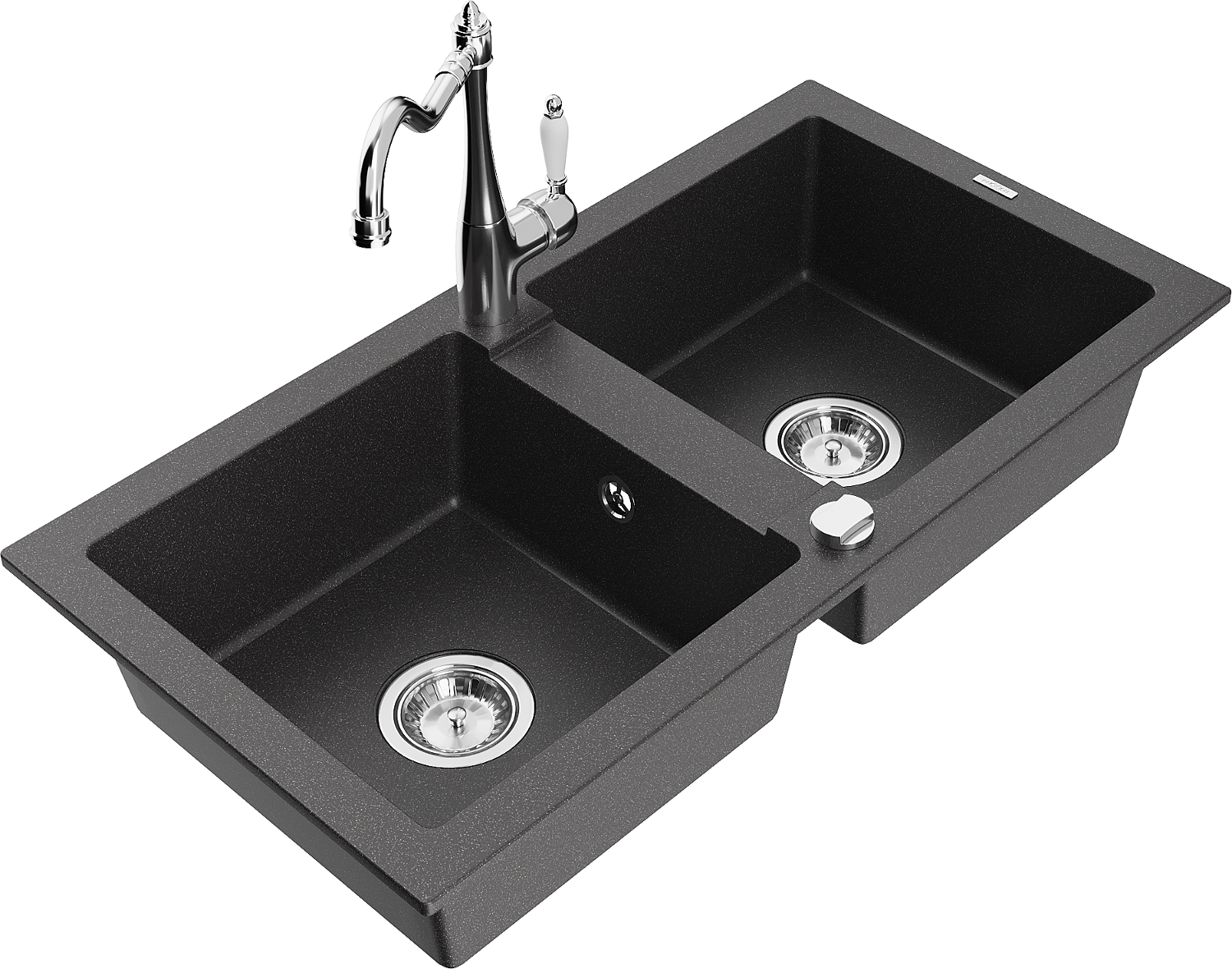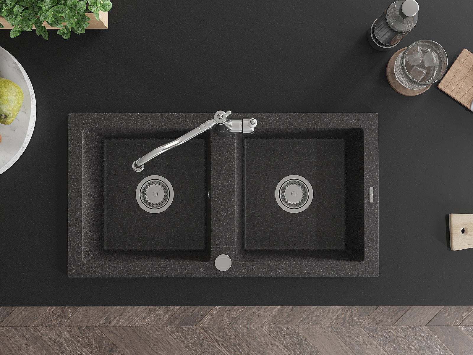 Mexen Mario divkameru granīta izlietne ar virtuves maisītāju Carla, melna plankumaina - 6504-76-670700-00