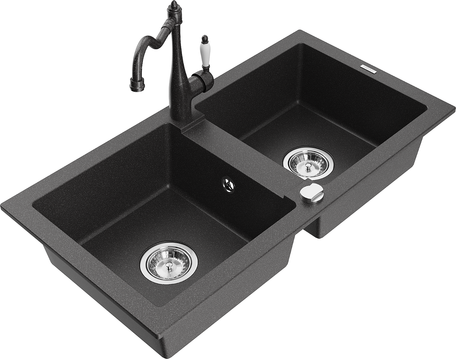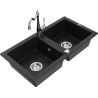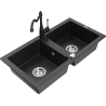 Mexen Mario granīta izlietne ar 2 nodalījumiem un virtuvei krānu Carla, melna ar punktiņiem - 6504-76-670700-76