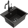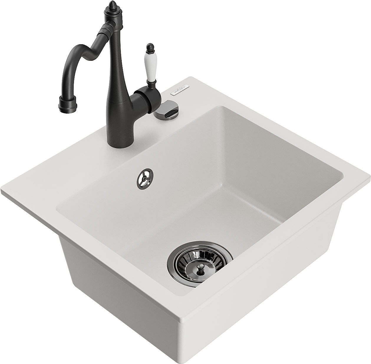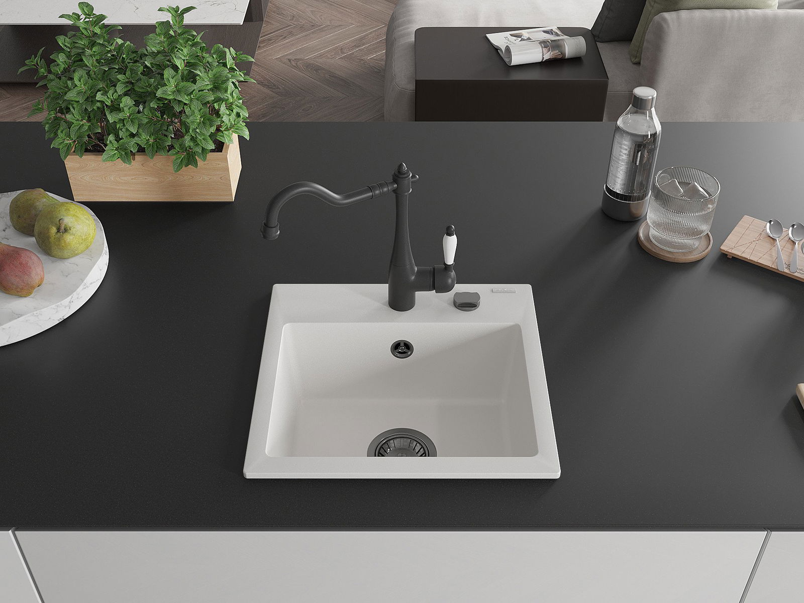 Mexen Milo granitā izlietne ar vienu nodalījumu un virtuves krānu Carla, balta - 6505-20-670700-70