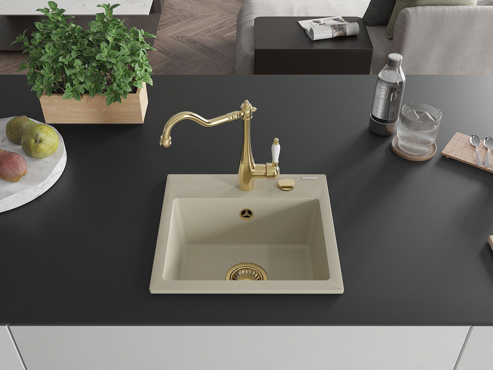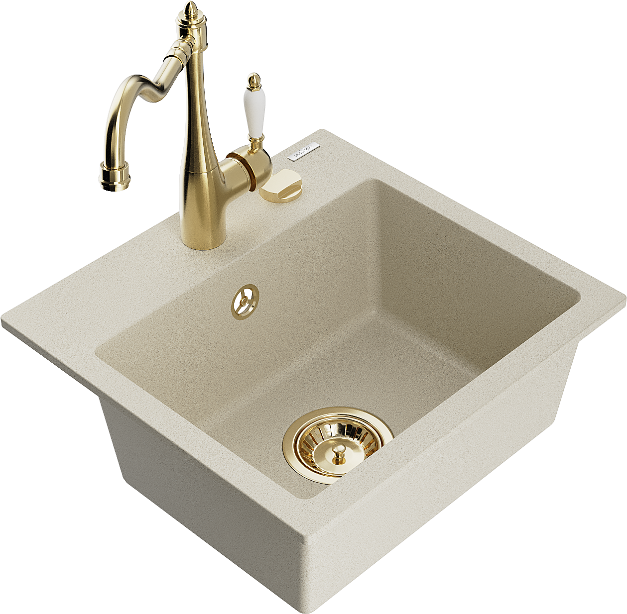 Mexen Milo granitais izlietne ar vienu nodalījumu un virtuvē krānu Carla, bēšs - 6505-69-670700-50
