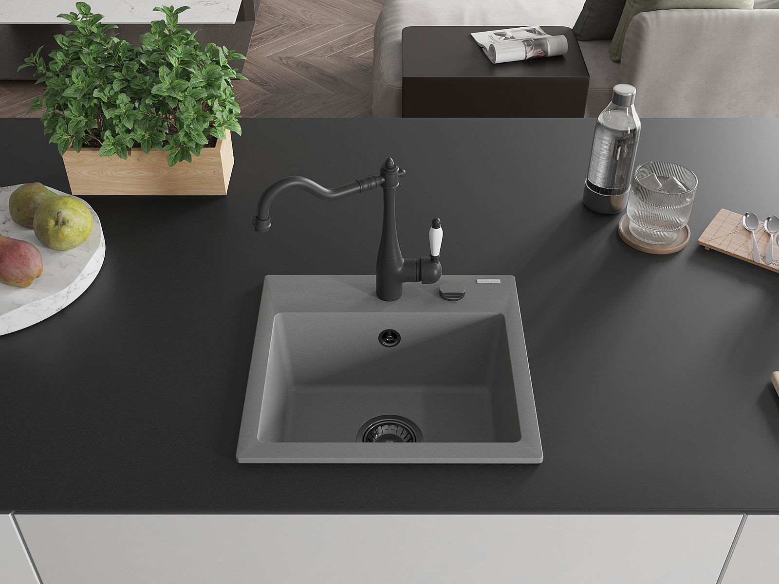 Mexen Milo granitizlietne ar 1 nodalījumu un virtuves jaucējkrānu Carla, pelēka - 6505-71-670700-70-B