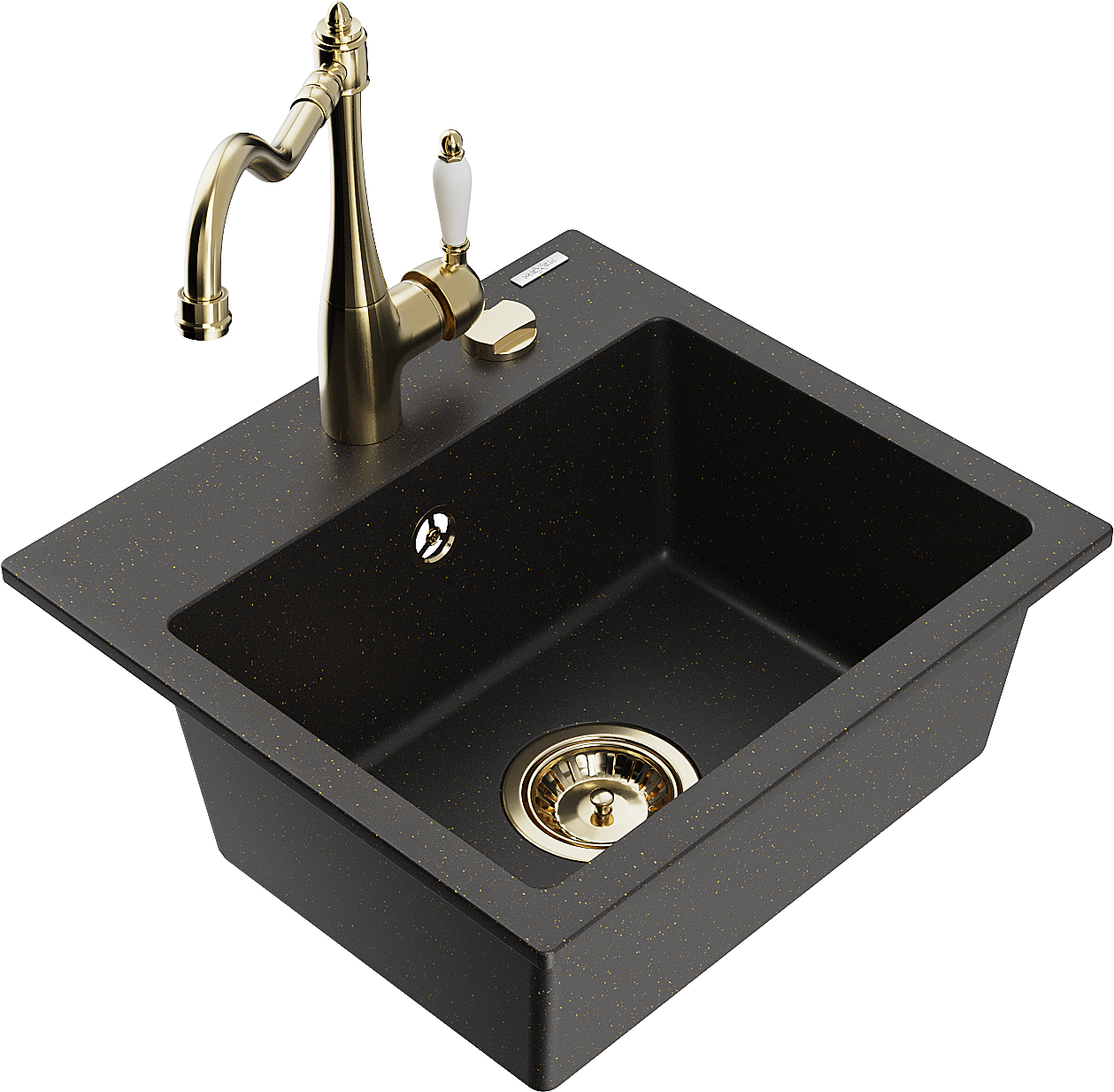 Mexen Milo 1-kameru granīta izlietne ar virtuves krānu Carla, melna/zeltains metālisks - 6505-75-670700-50