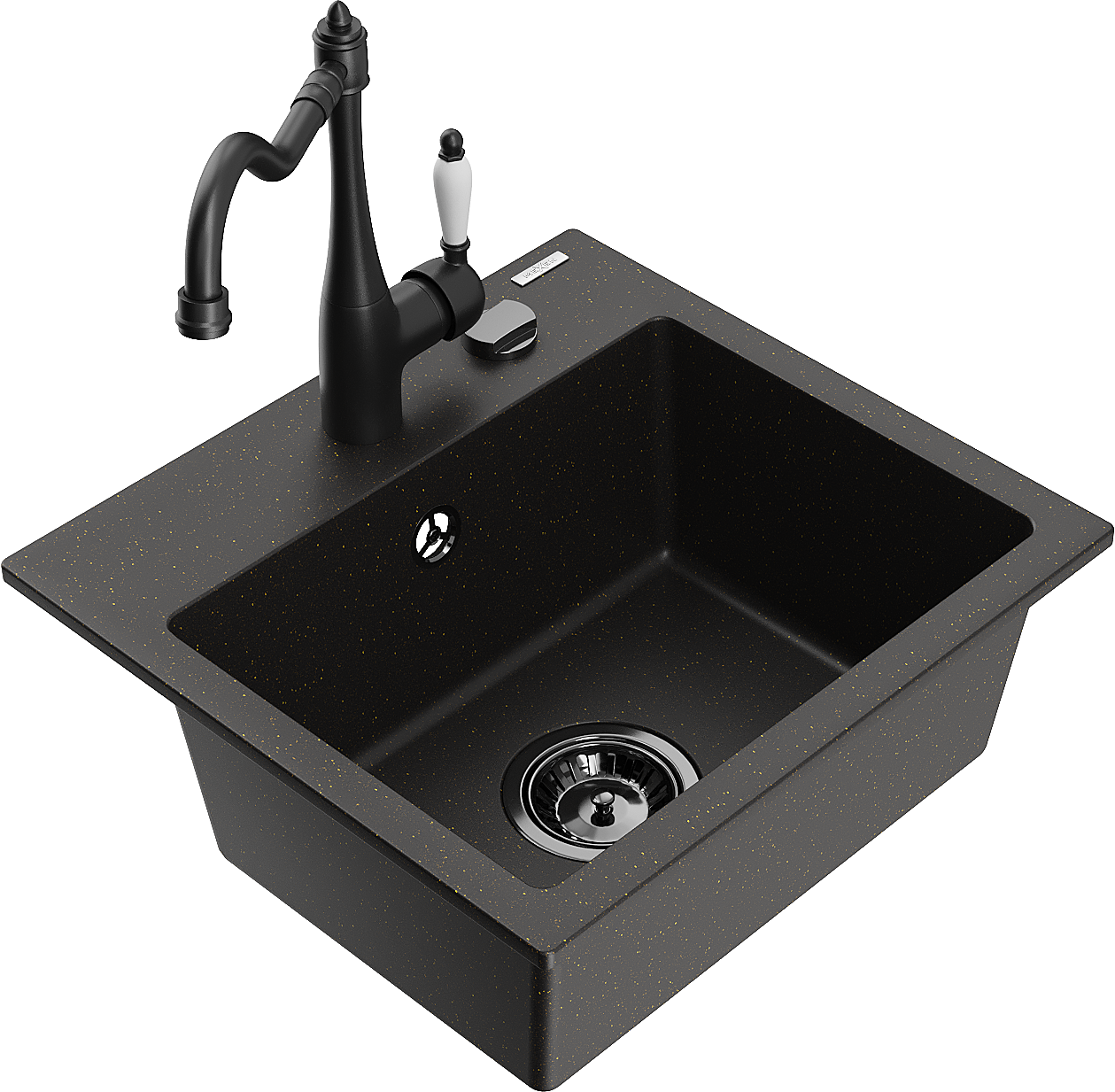 Mexen Milo granitizlietne ar vienu nodalījumu un virtuves jaucējkrānu Carla, melna/zeltīta metālika - 6505-75-670700-70-B