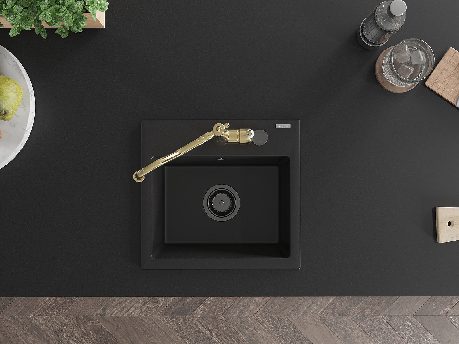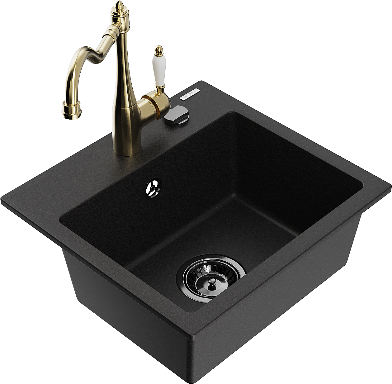 Mexen Milo granīta virtuves izlietne ar vienu nodalījumu un ar virtuves jaucējkrānu Carla, melna - 6505-77-670700-50-B