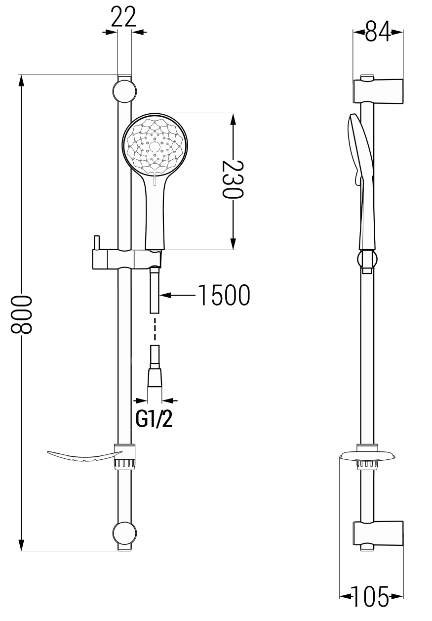 Savienojums ar 1/2" vītni ir vispārēji izmantots standarta elements iekšējās ūdens instalācijās. Pateicoties tam, dušas papildu elementu pievienošana un montāža ir daudz vieglāka un intuitīvāka.
