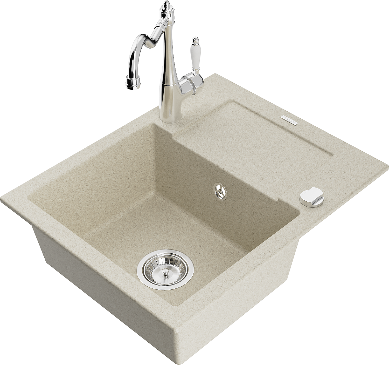 Mexen Enzo 1 sekcijas granīta izlietne ar noteces vietu un virtuves jaucējkrānu Carla, bēšs - 6506-69-670700-00