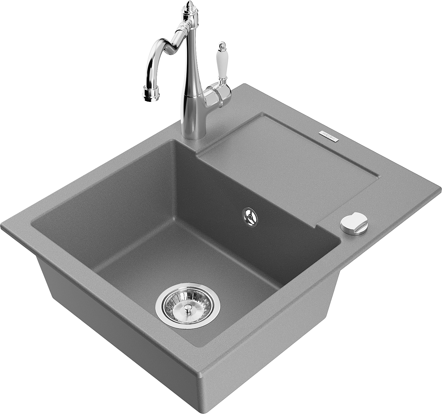 Mexen Enzo granitē izlietne ar vienu nodalījumu ar noteku un virtuves jaucējkrānu Carla, pelēka - 6506-71-670700-00