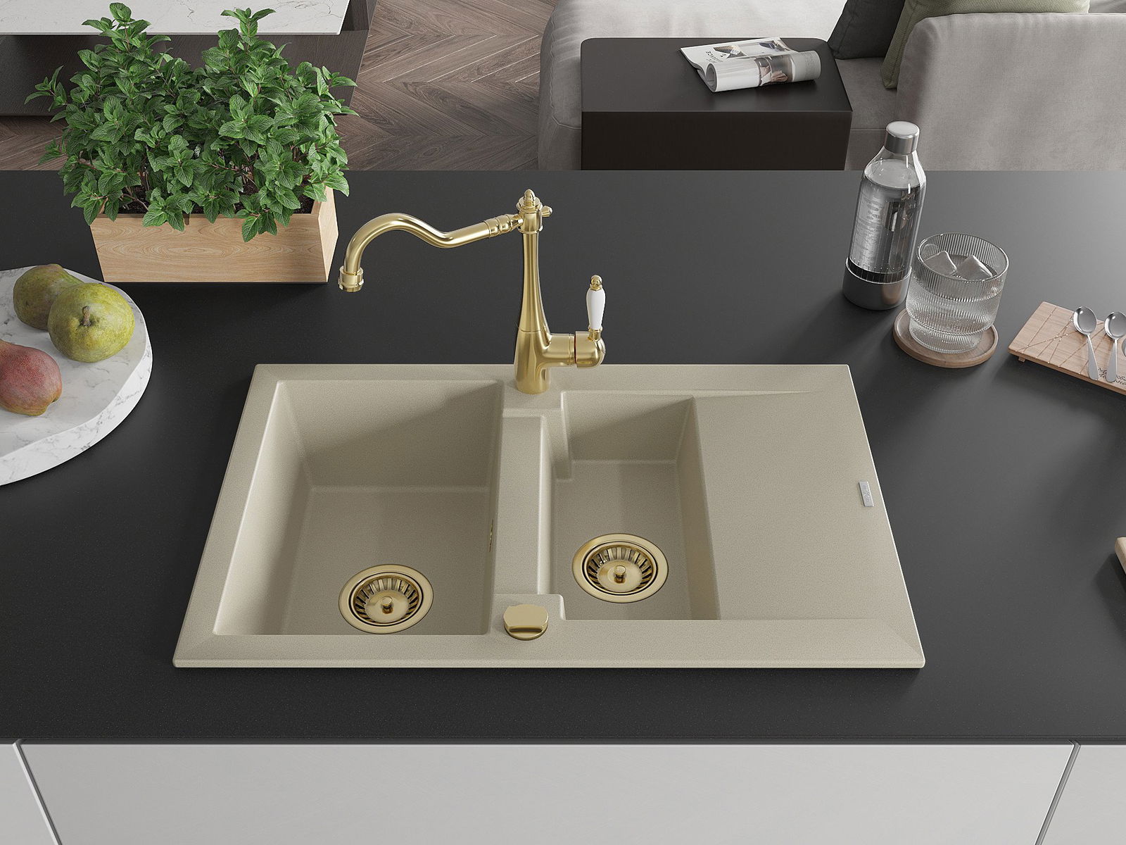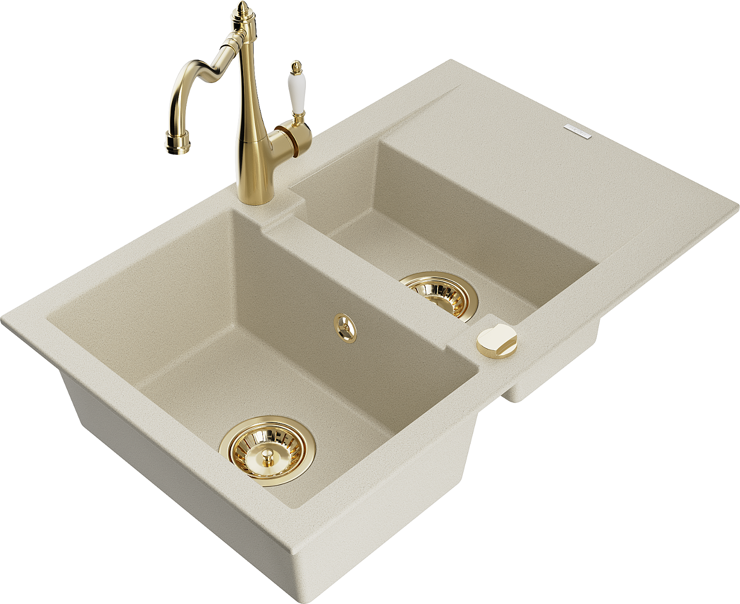 Mexen Gaspar granitais izlietne ar 1,5 kameru ar drenāžu un virtuves jaucējkrāns Carla, bēšs - 6507-69-670700-50