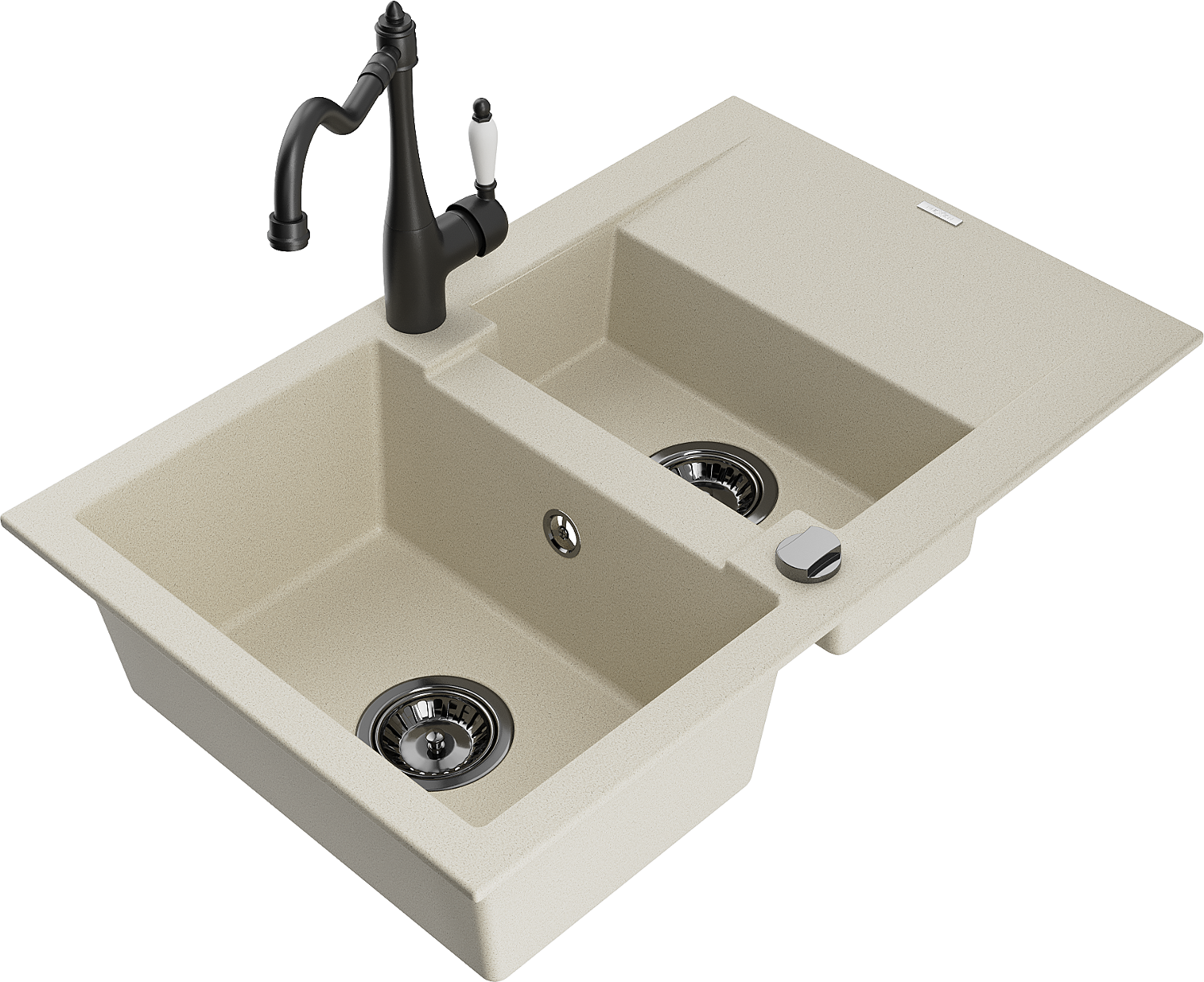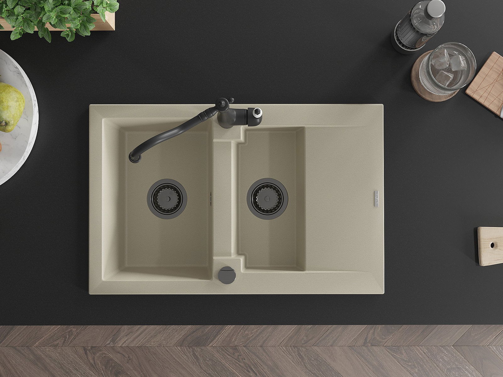 Mexen Gaspar granīta izlietne 1,5 nodalījumu ar noteces paplāti un virtuves krānu Carla, bēša - 6507-69-670700-70